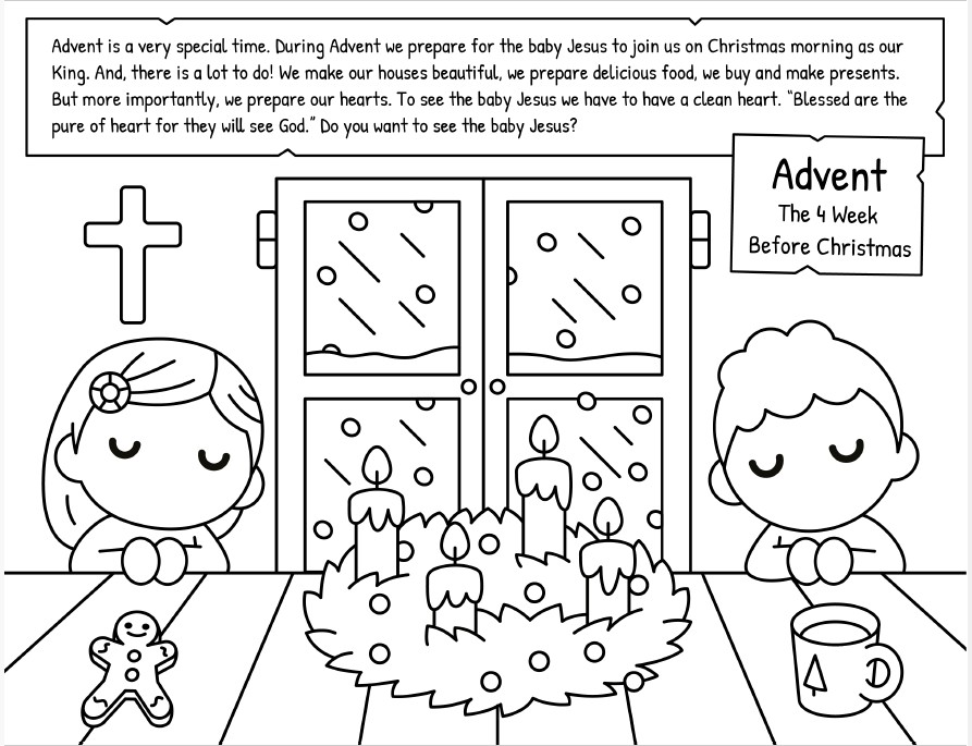 Activity: Advent Calendar: A Nativity scene to color one part each day during Advent).