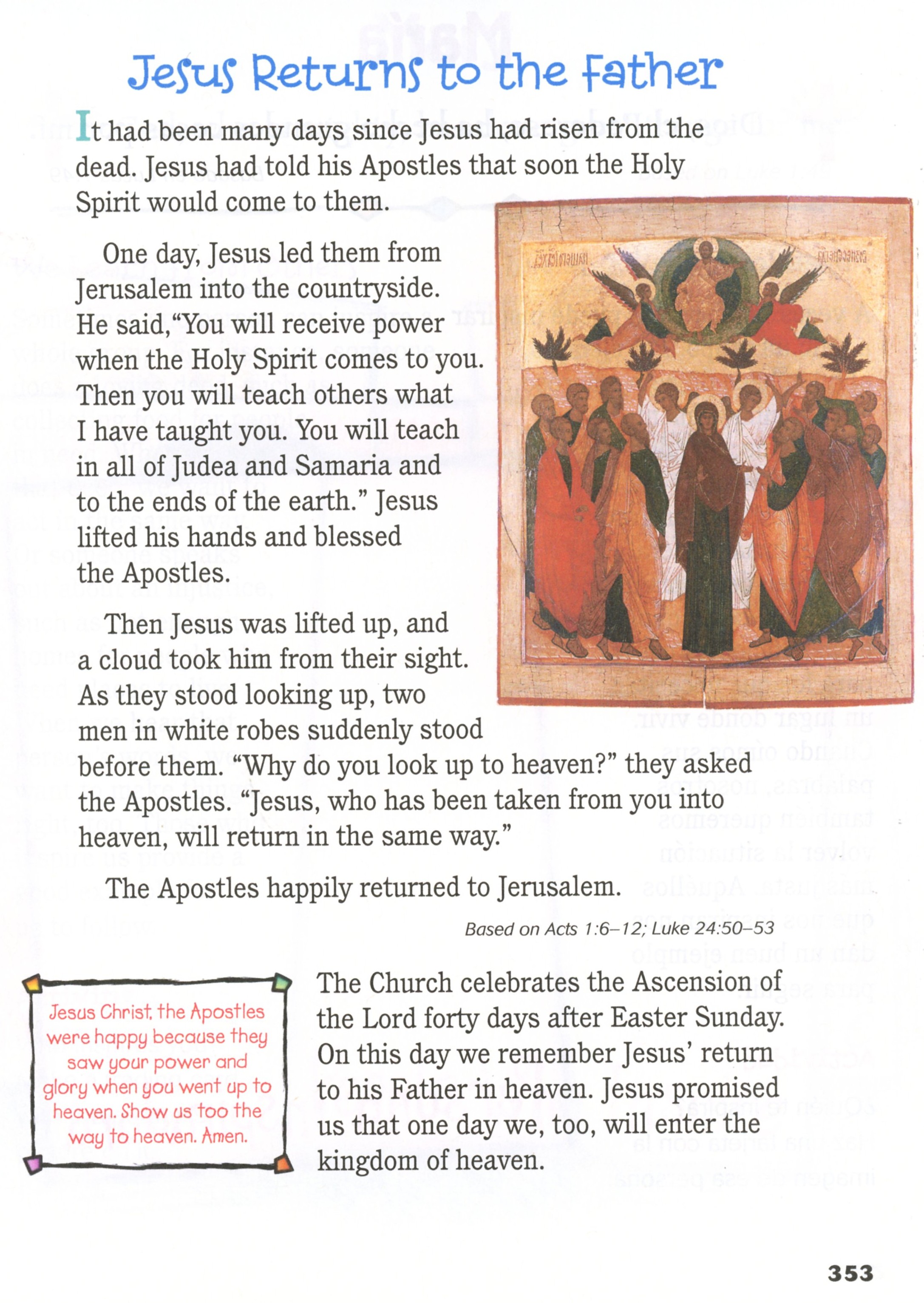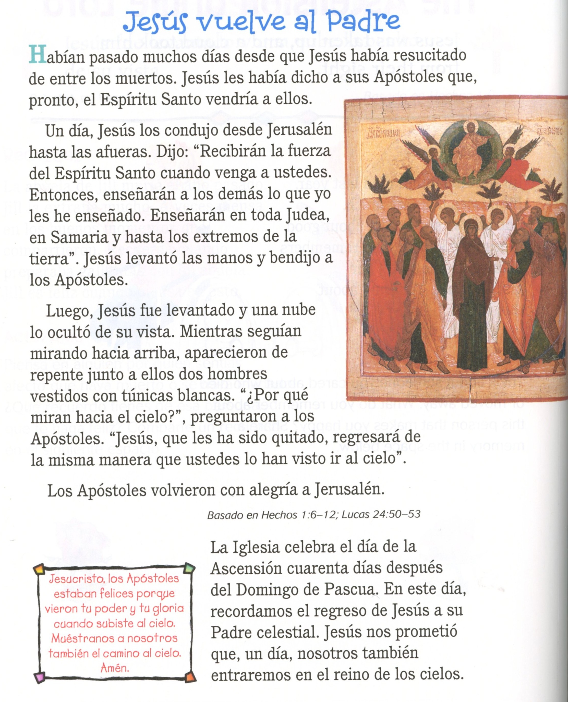 Analice la Ascensión y el hecho de que él nos dejó para enviar al Espíritu Santo, lo cual conduce a Pentecostés.