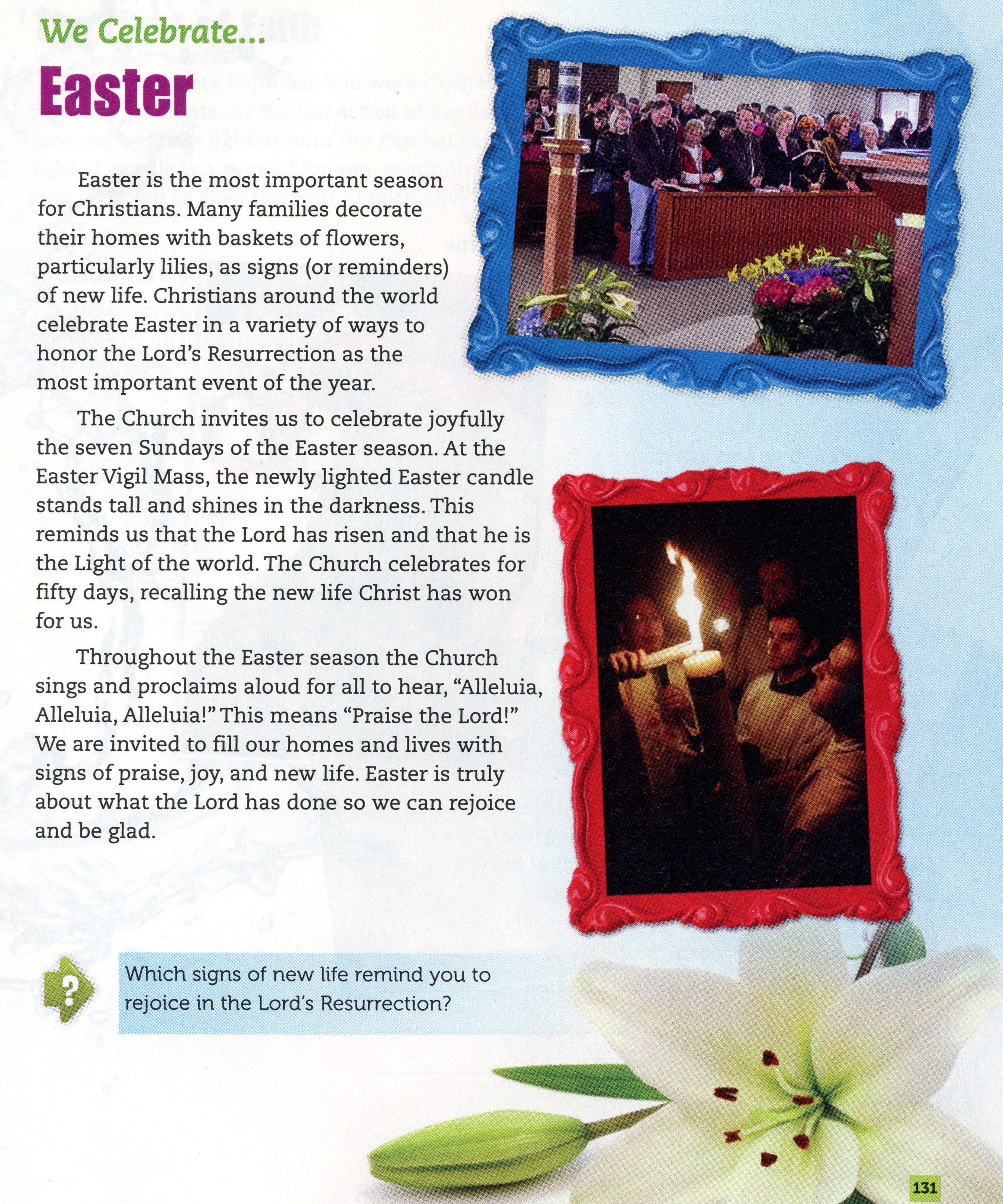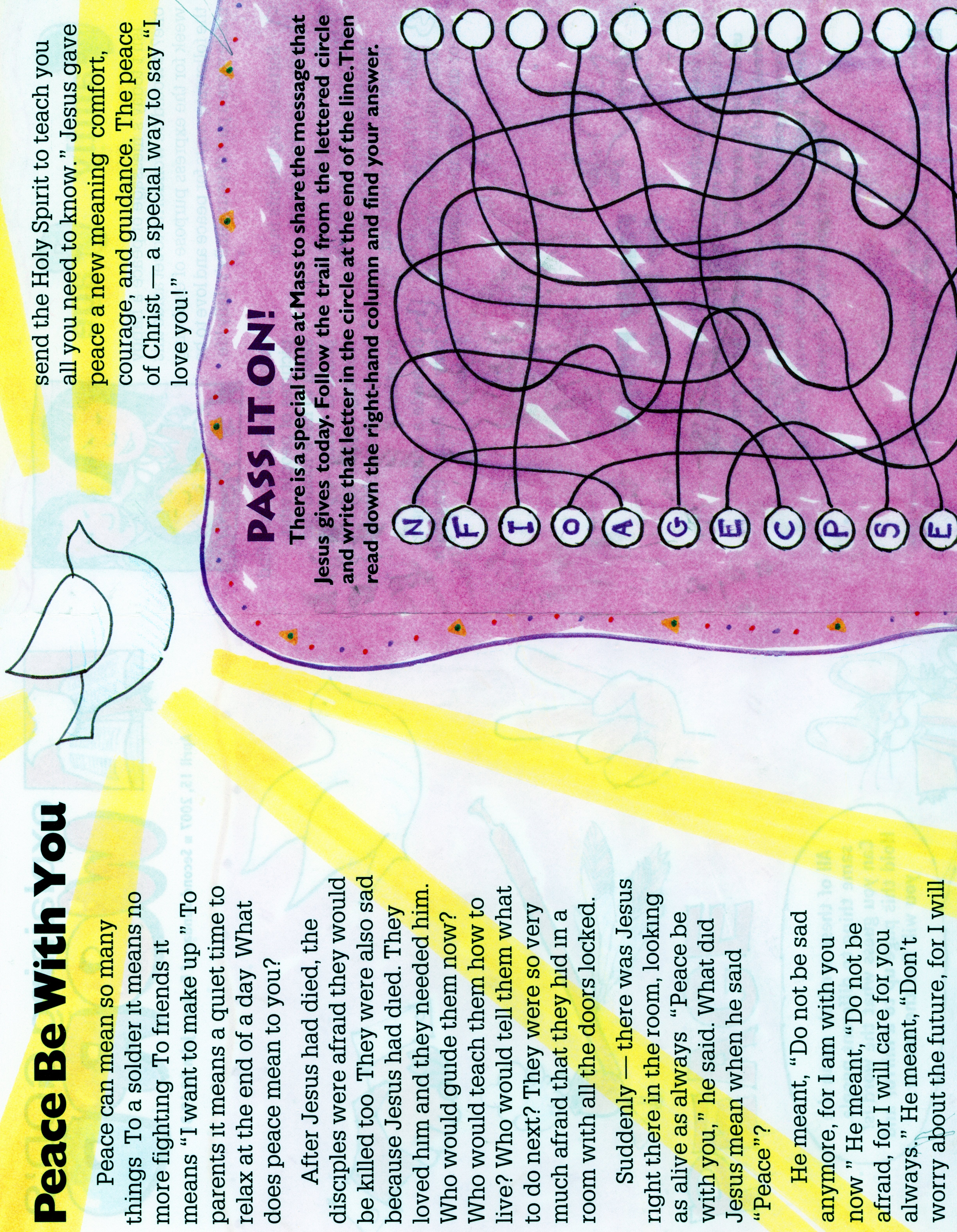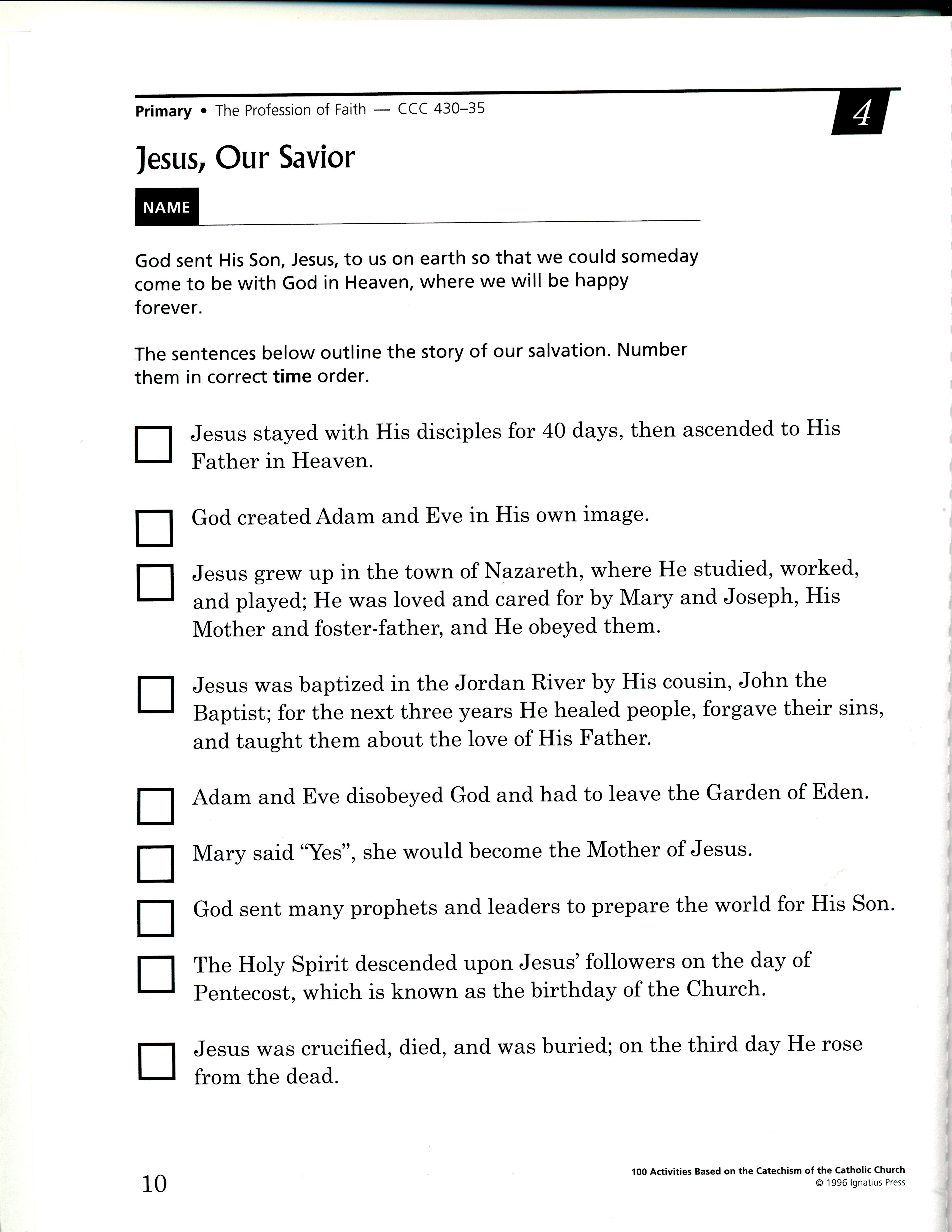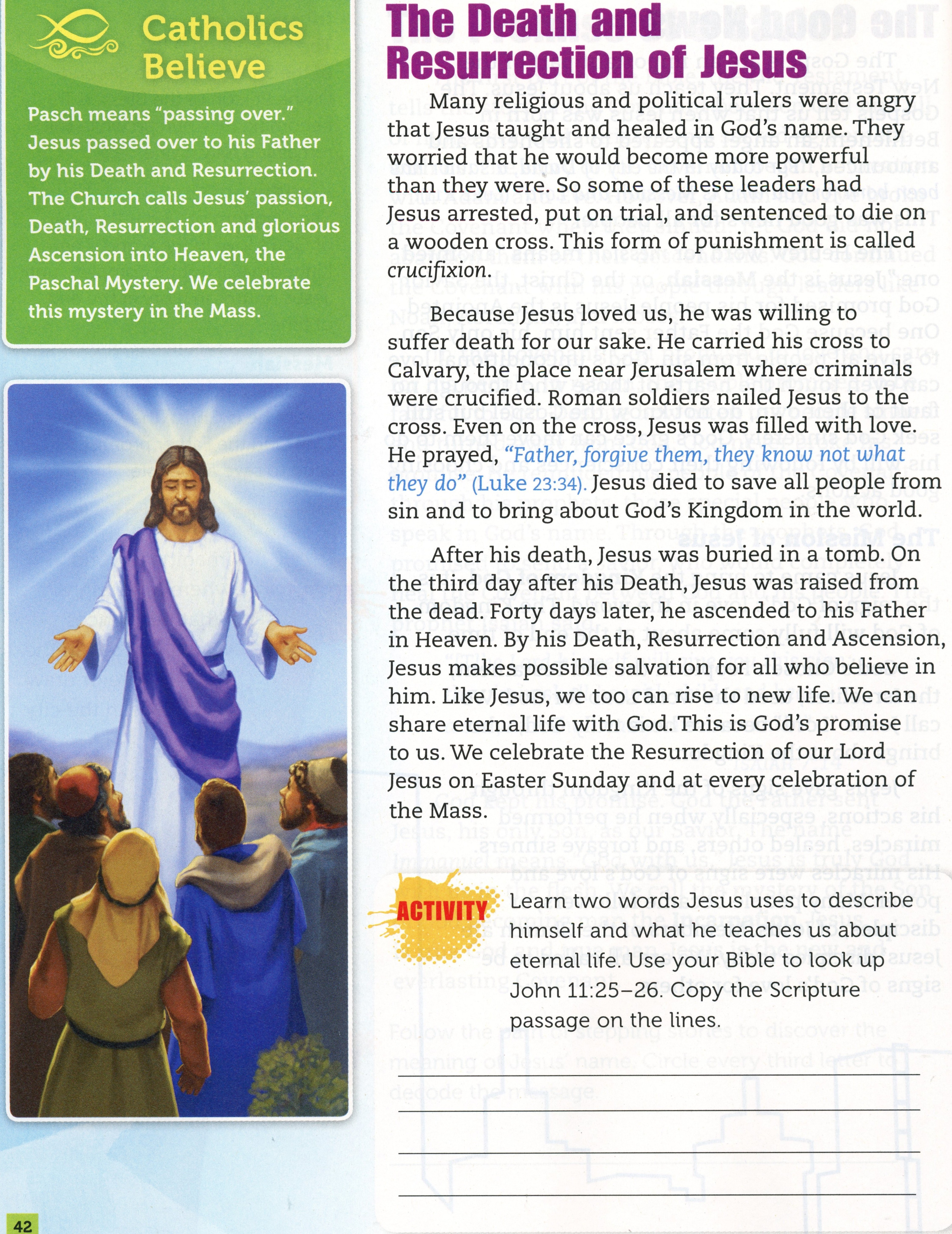 The purpose of this class is to show the students what happened after Jesus died. Talk about the resurrection and how many people saw him after that. Discuss the Ascencion and that he left us to send the Holy Spirit, which leads to Pentecost.