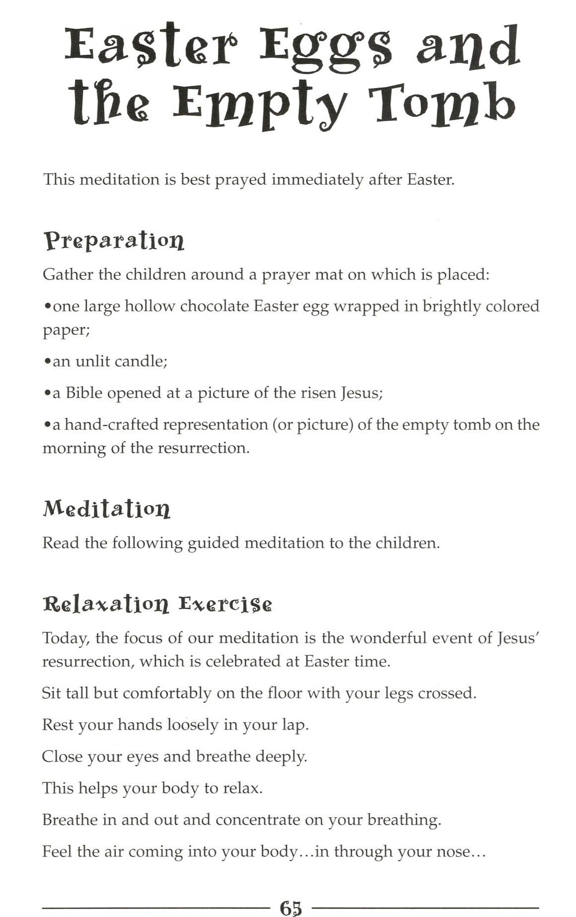 This is a meditation prayer activity you can use with the students. (Students do not need a copy of this.)