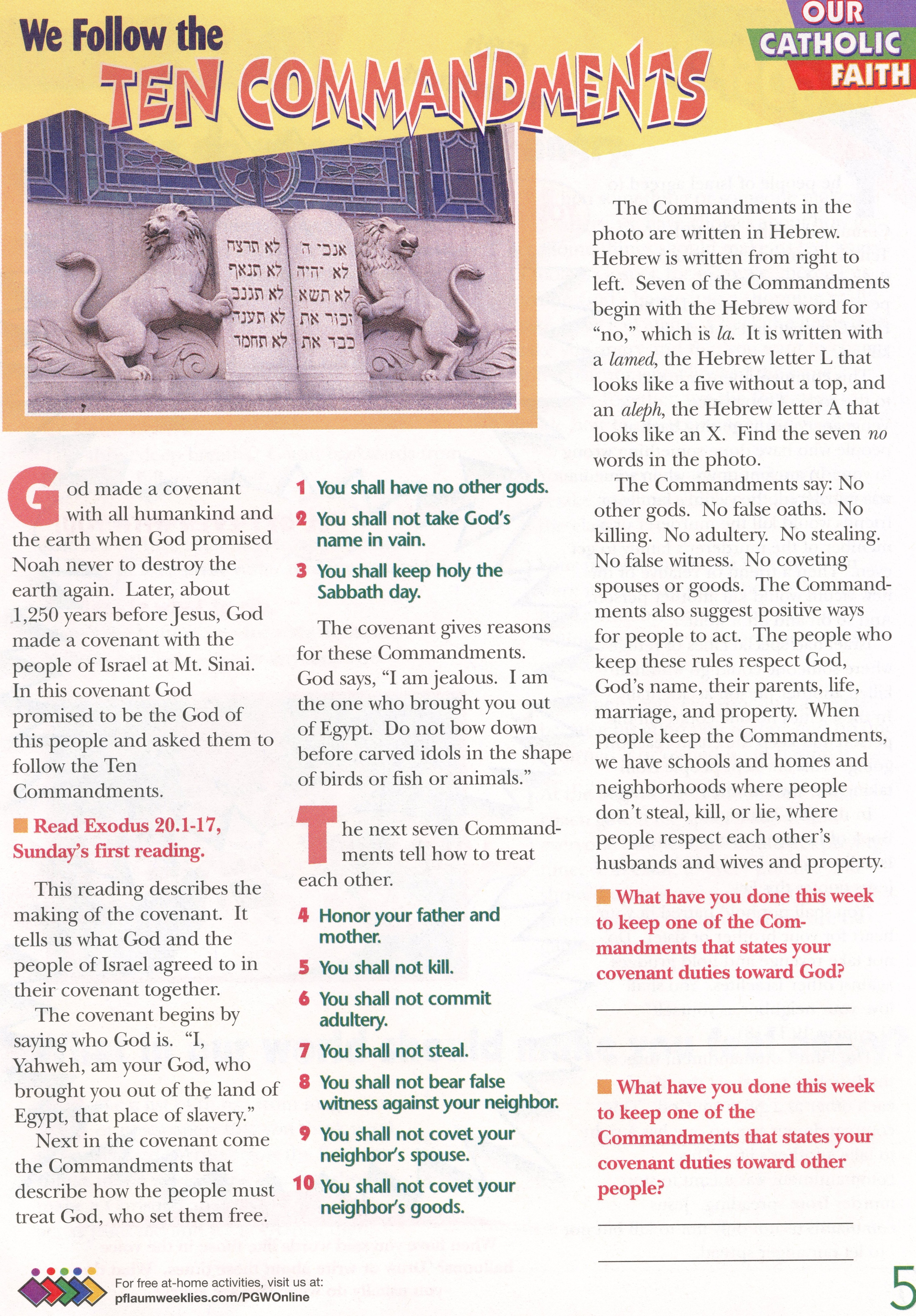- Help the students start to memorize the Ten Commandments.
