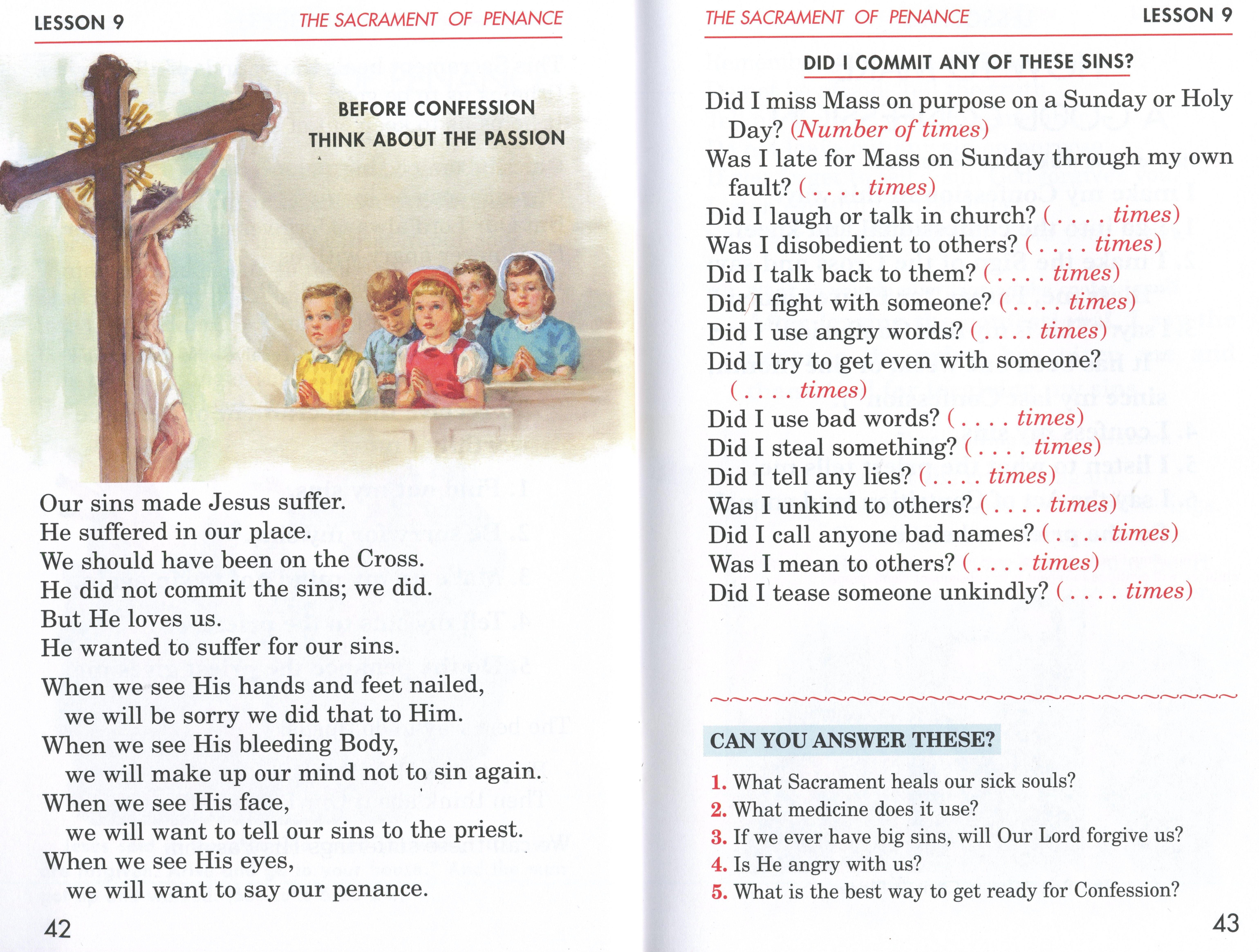 An Examination of Conscience: From "First Communion Catechism".