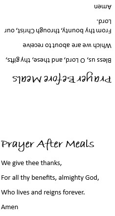 Meal Prayers - Can be folded in half and placed on a table. Prints 4x on 1 sheet of standard paper. (solo en ingles)