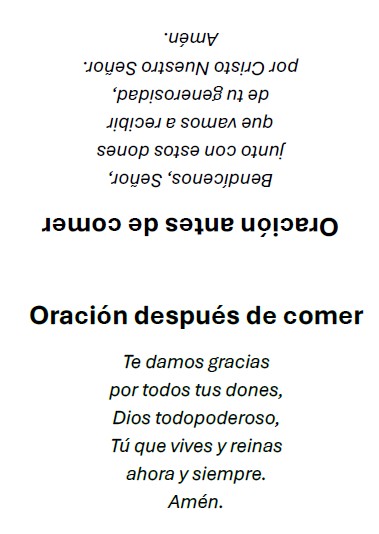 Meal Prayers - Can be folded in half and placed on a table (solo en ingles)