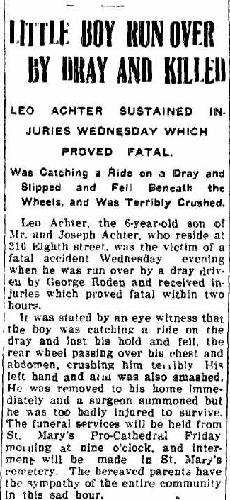 | 78 1911, 03/23 Bismarck, ND Daily Tribune Newspaper article on the Death Of Leo Achter-age6 | |