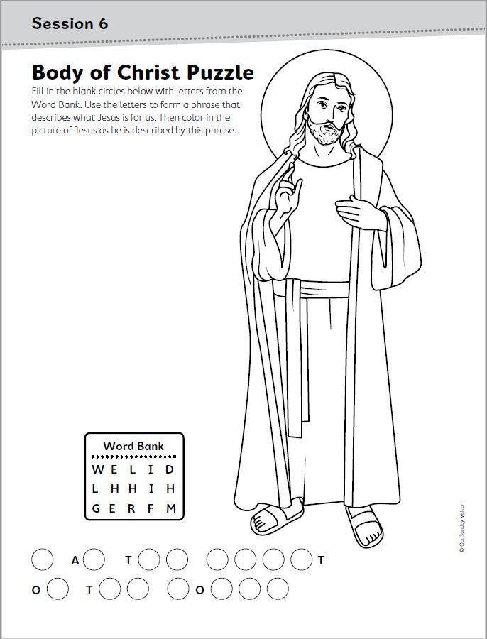 "Body of Christ" puzzle and picture to color from the book's resources