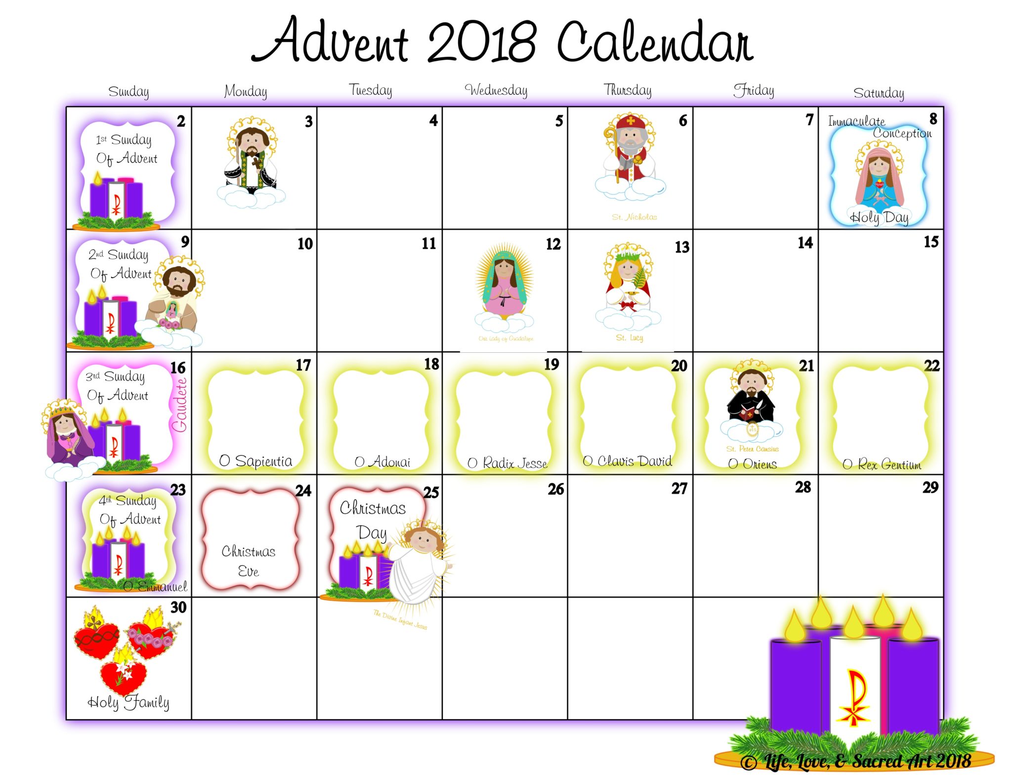 A more artistic traditional Church Calendar to color