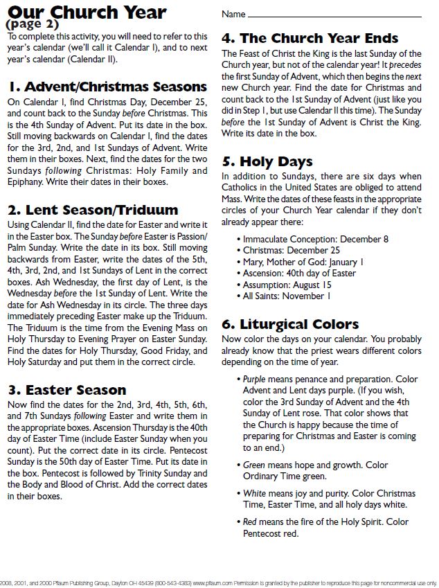 A more traditional Church Calendar to color