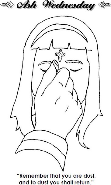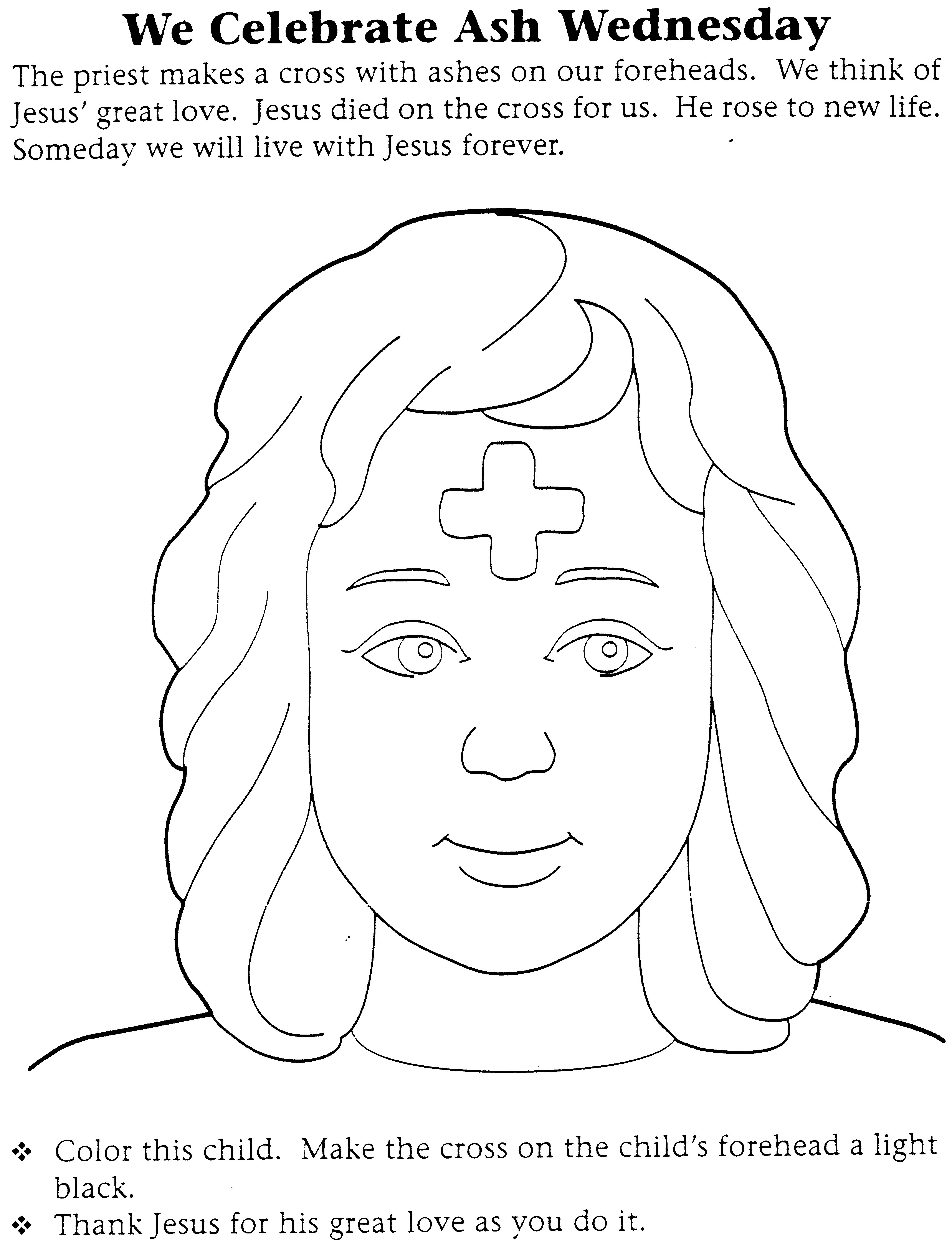 Ash Wednesday - picture to color of child with ashes