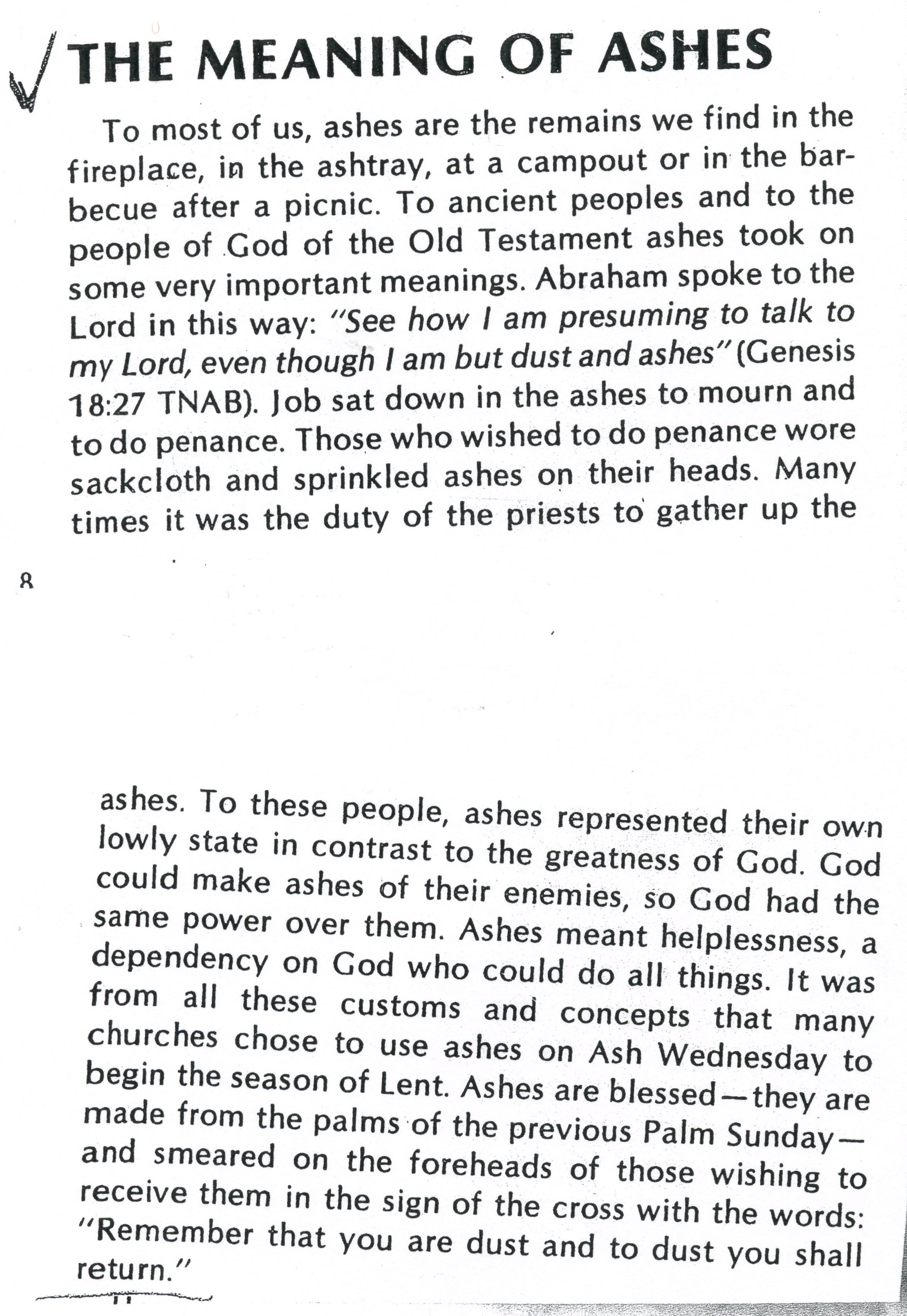 Ash Wednesday - The meaning of Ashes