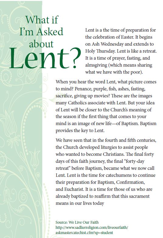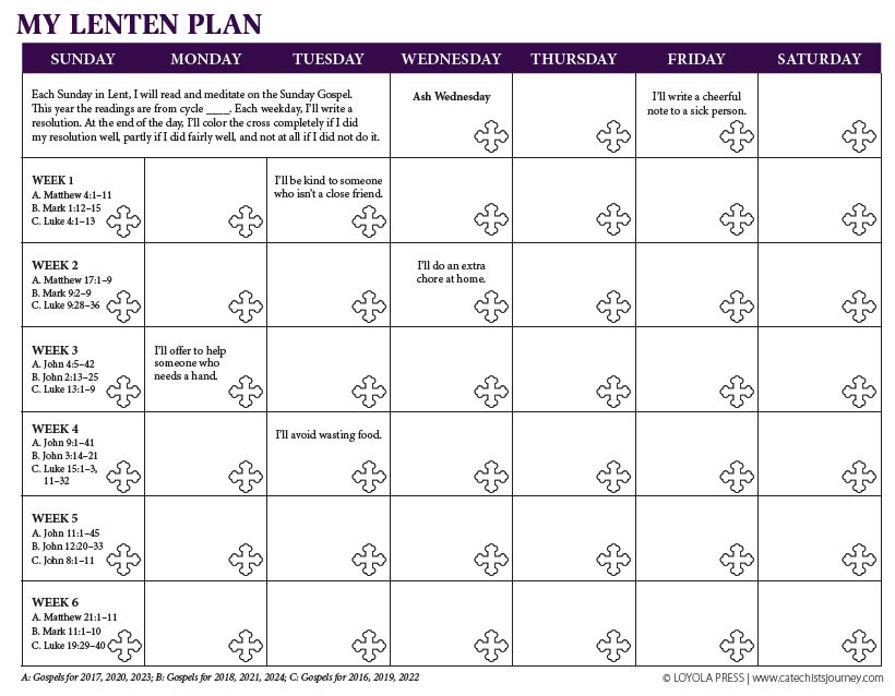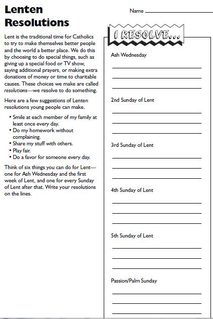 Living Out Lent Activity: for the younger ages, an activity to choose resolutions during class and then continue throughout lent