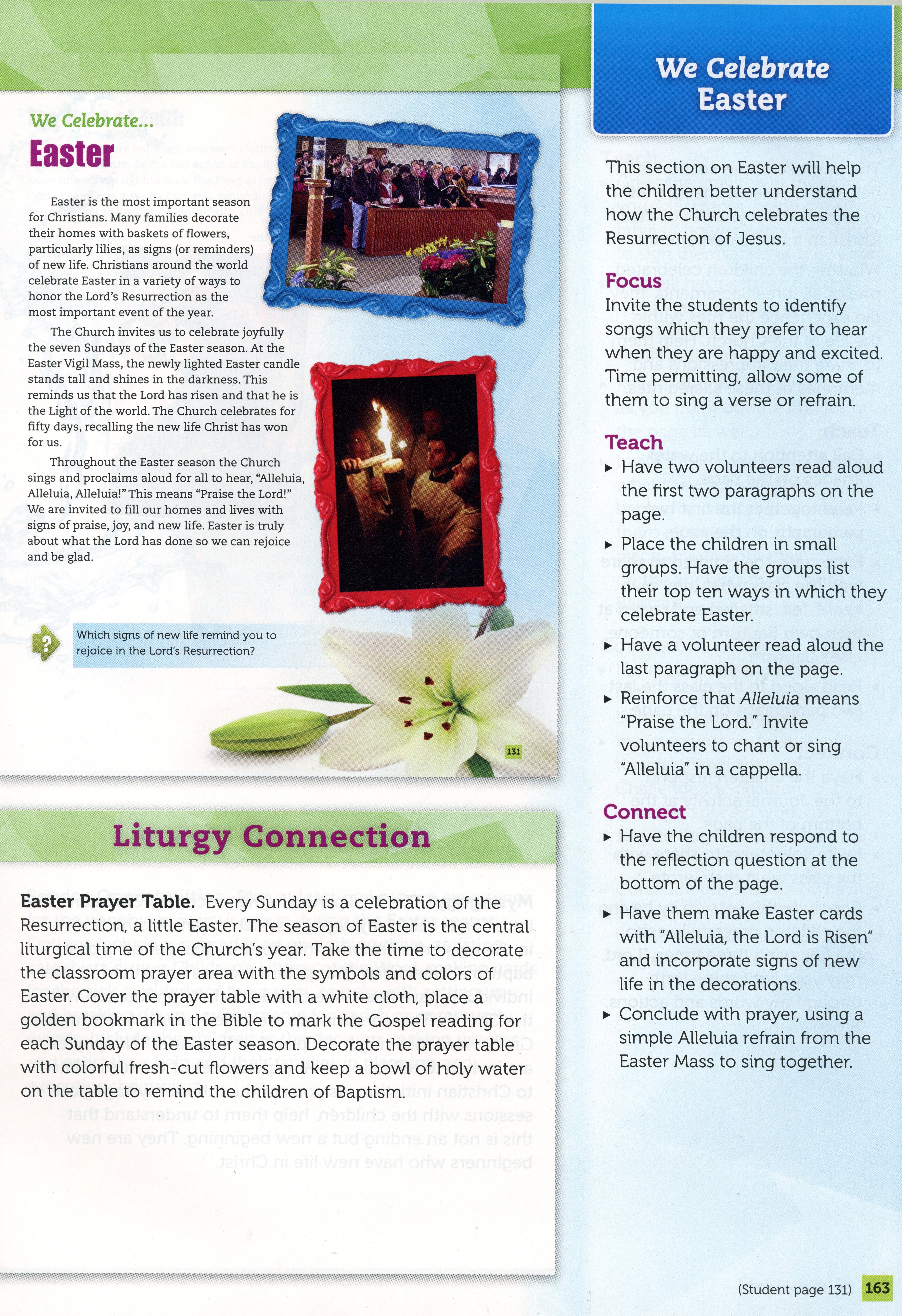 The purpose of this class is to show the students what happened after Jesus died. Talk about the resurrection and how many people saw him after that. Discuss the Ascencion and that he left us to send the Holy Spirit, which leads to Pentecost.