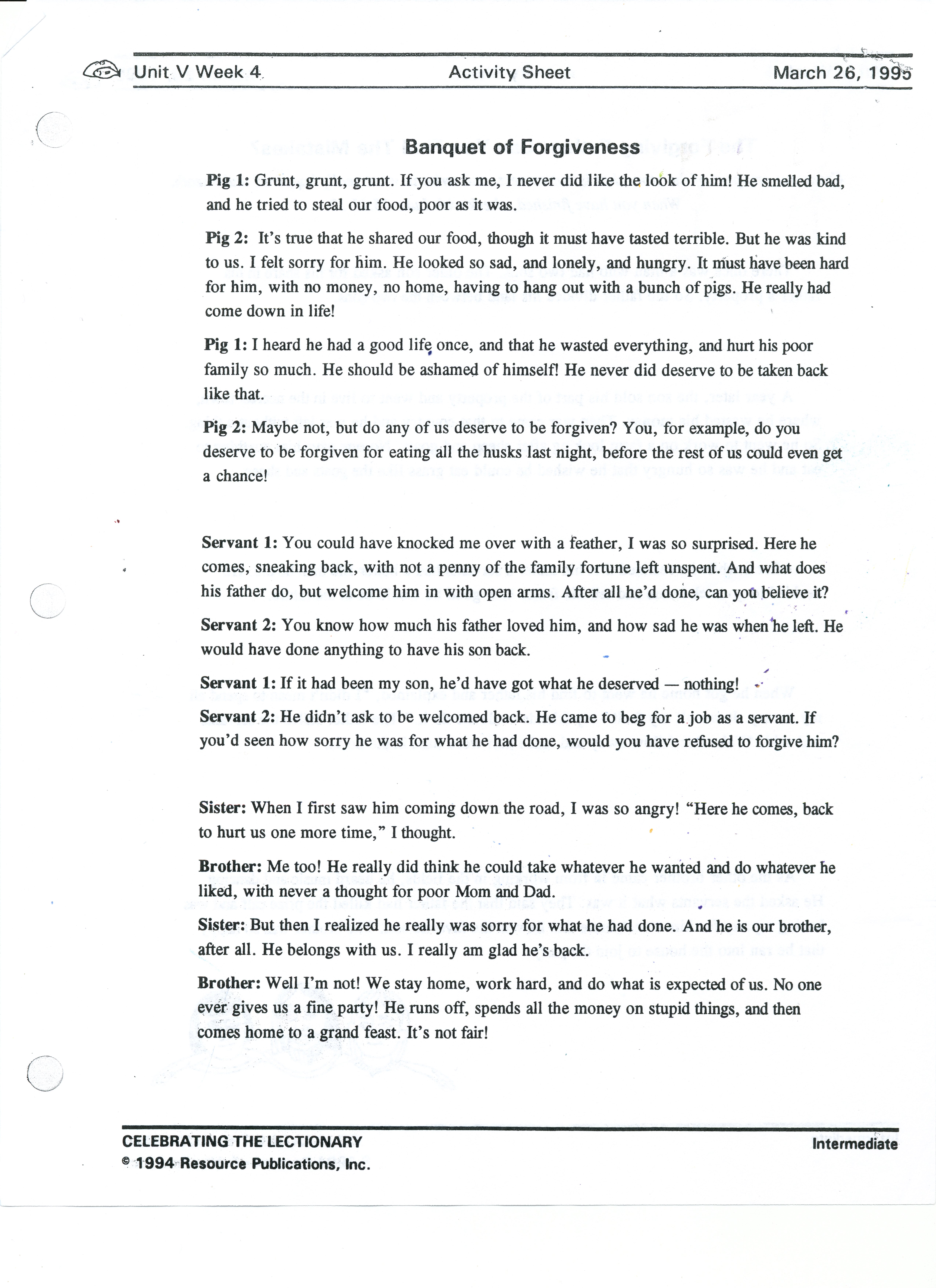 - God's Word: The Parable of the Lost Son (Luke 15:11-24) p.60-61 This could be acted out.