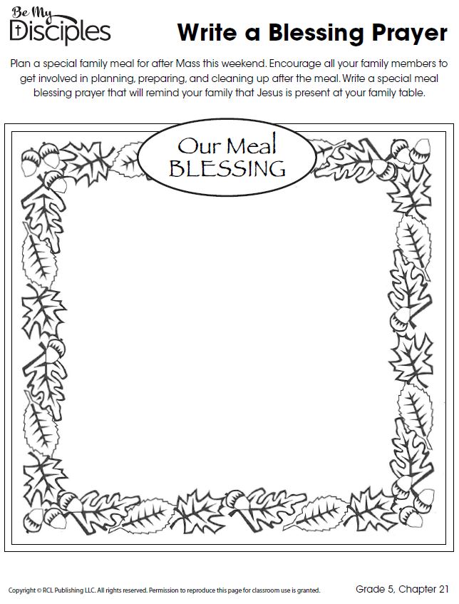Activity: Paste a copy of the Prayer Before Meals on a paper plate