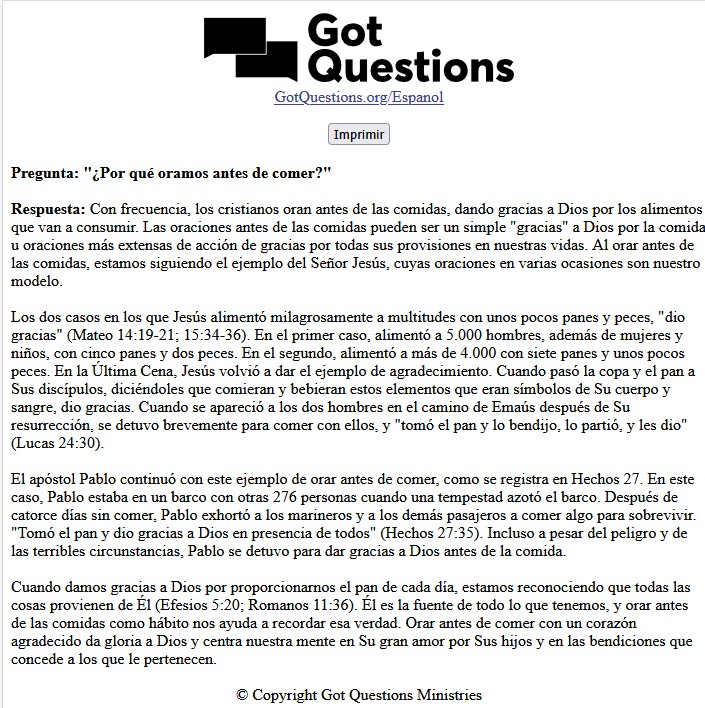 Got Questions? Por que oremos antes de comer? - para adultos - en español