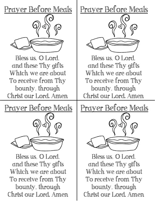 The Prayer Before Meals - 4 copies per page - Version 1 - colorable.