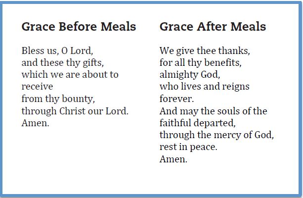 Prayer Before Meals video from Catholic.org (solo en ingles)