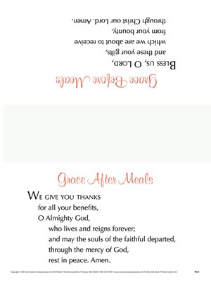 Meal Prayers - Can be folded in half and placed on a table (solo en ingles)