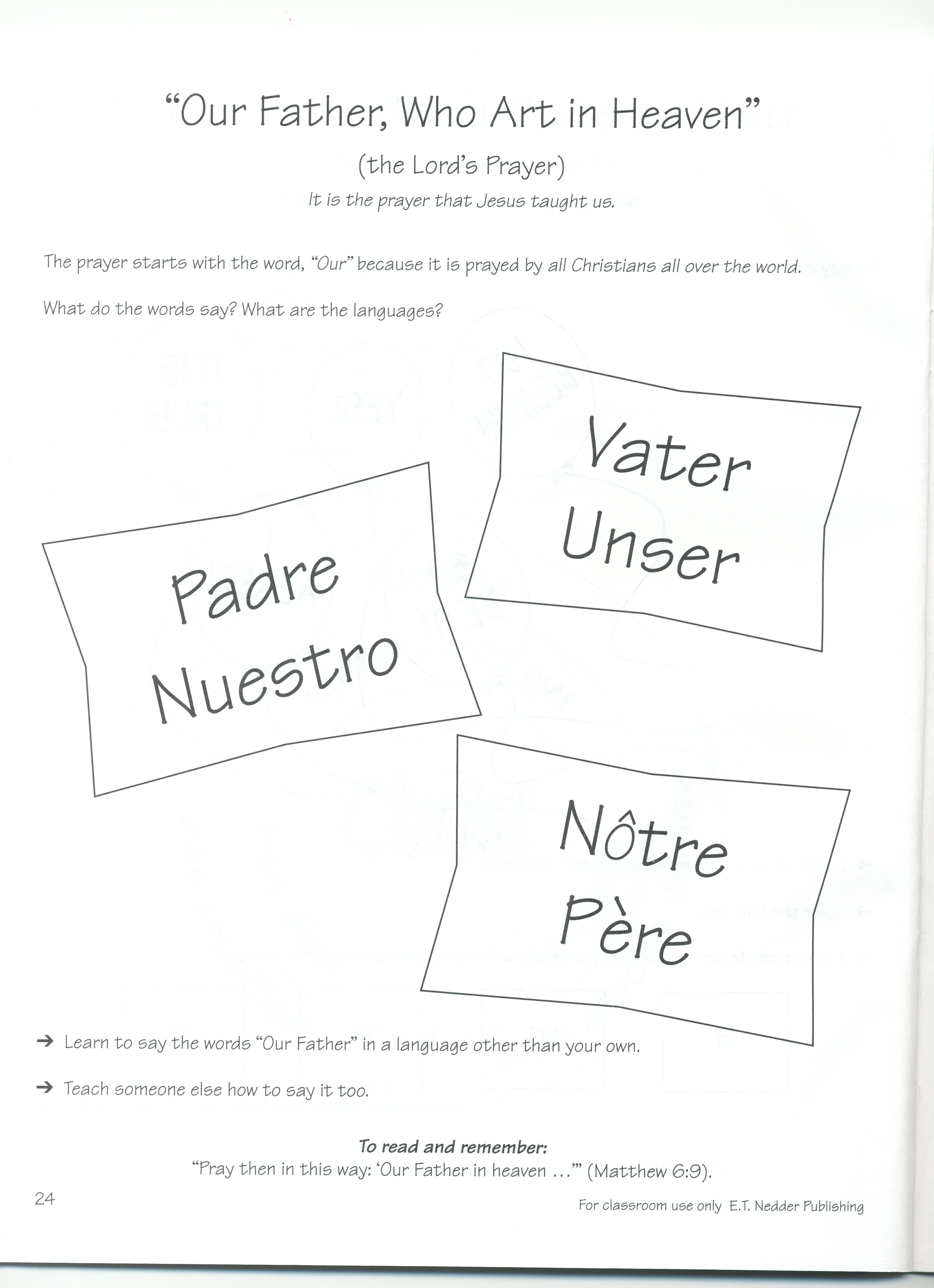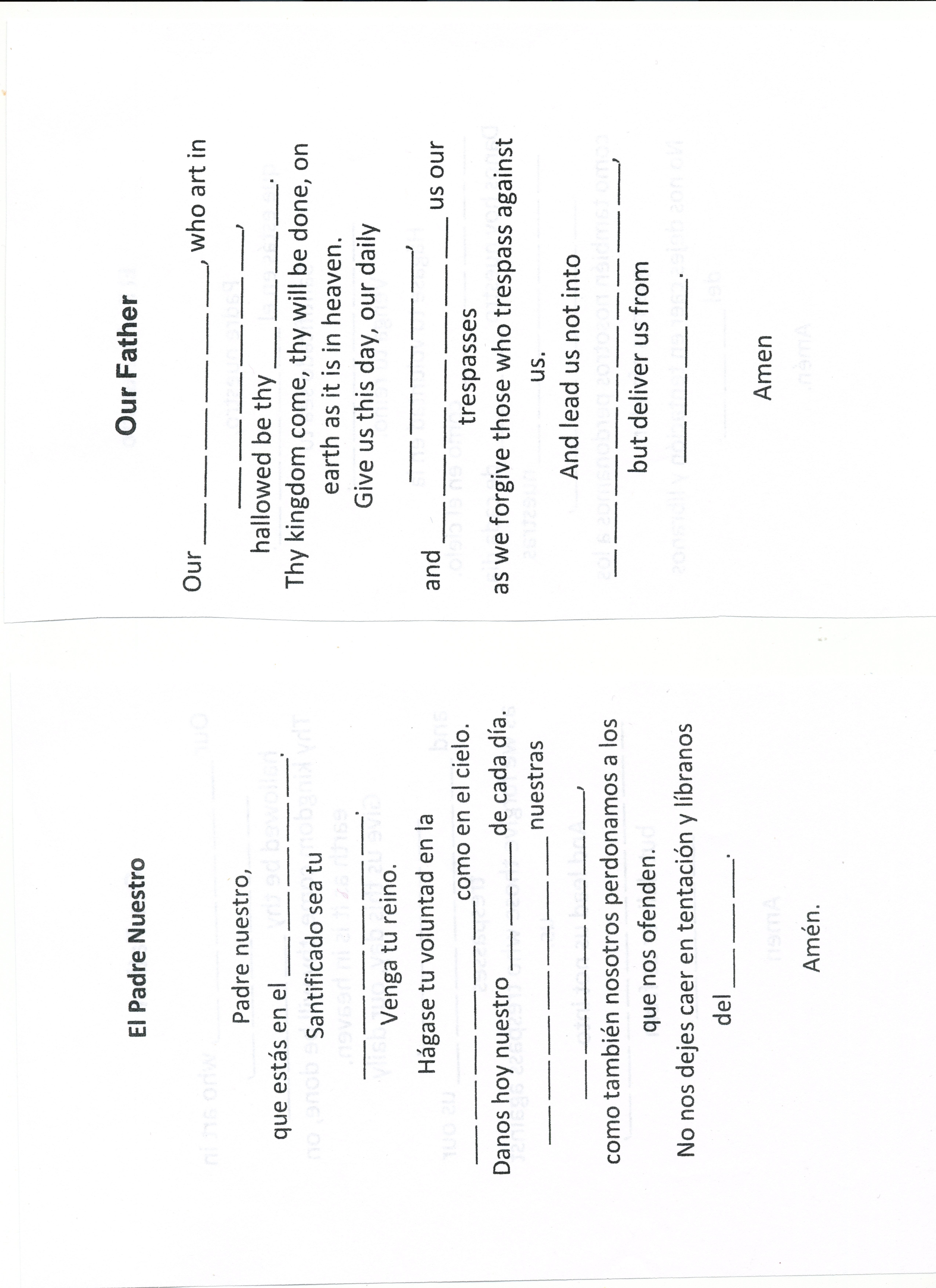 The Our Father - puzzle to cut apart and put back together (solo en ingles)