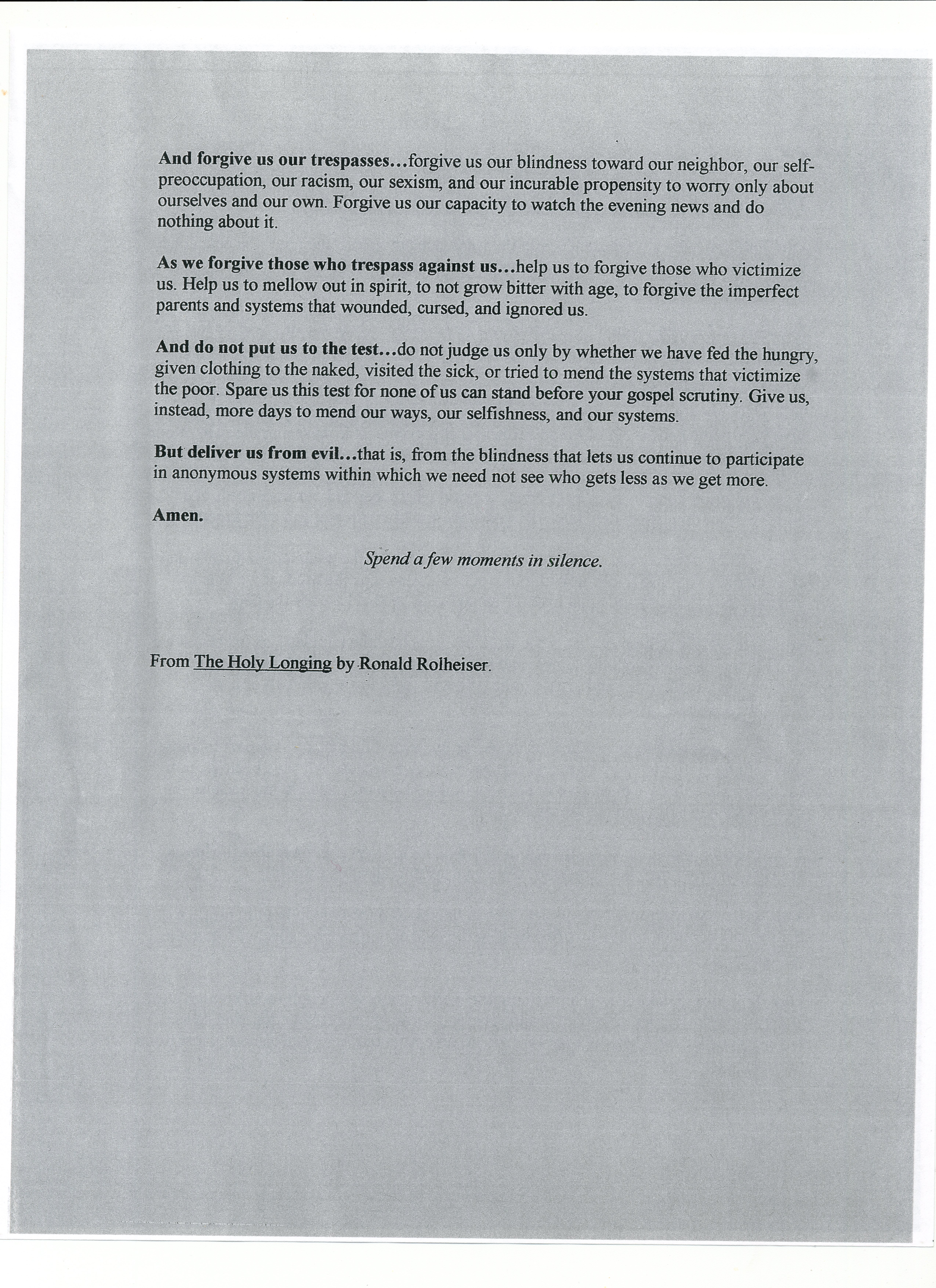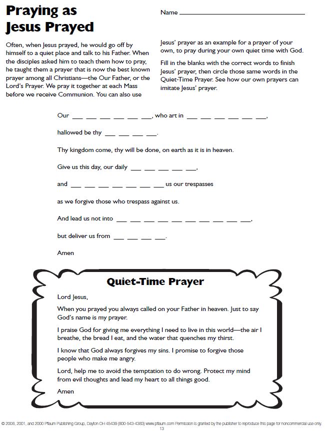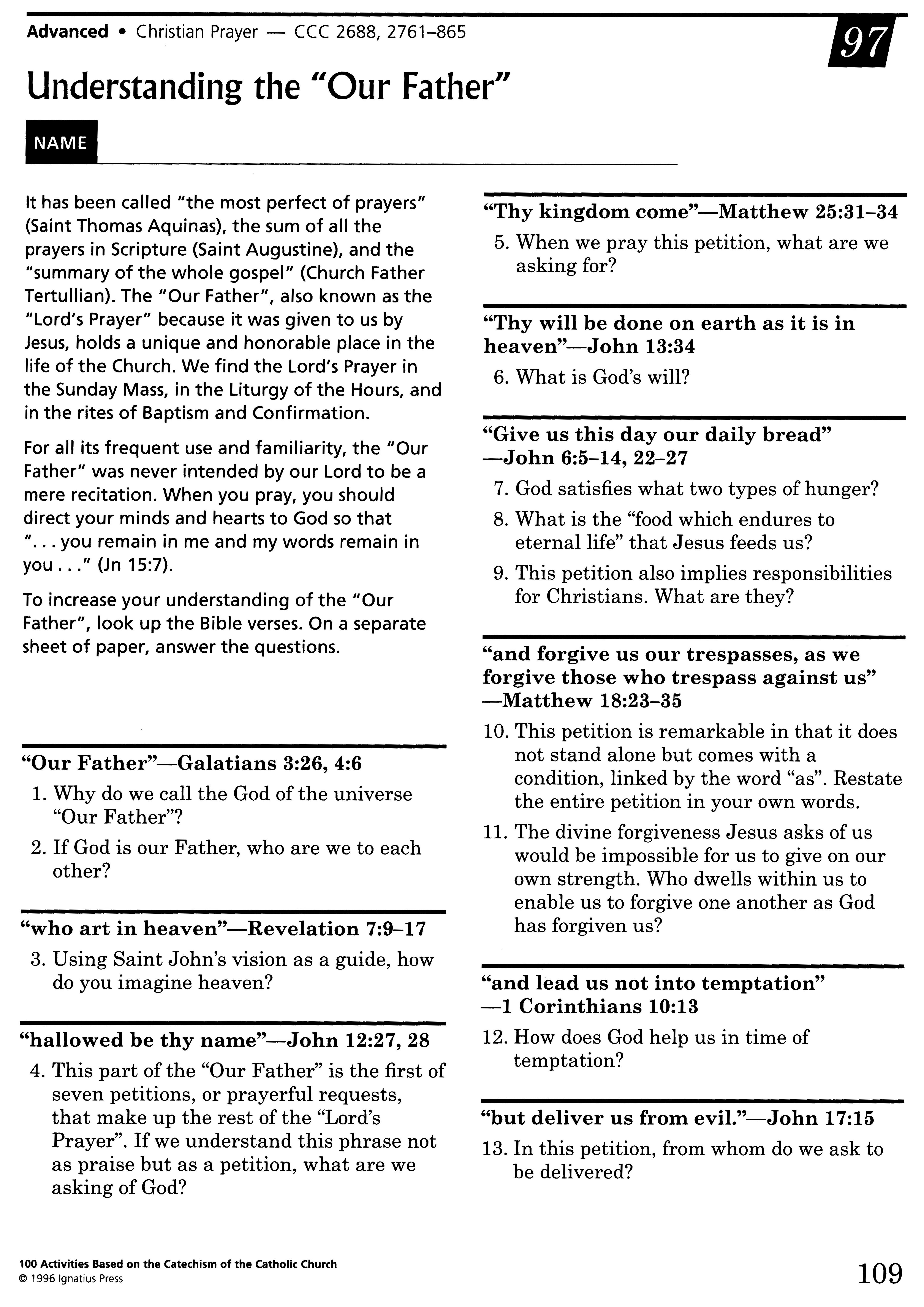 The Our Father - "Praying as Jesus Prayed" fill in the blanks - with commentary (solo en ingles)