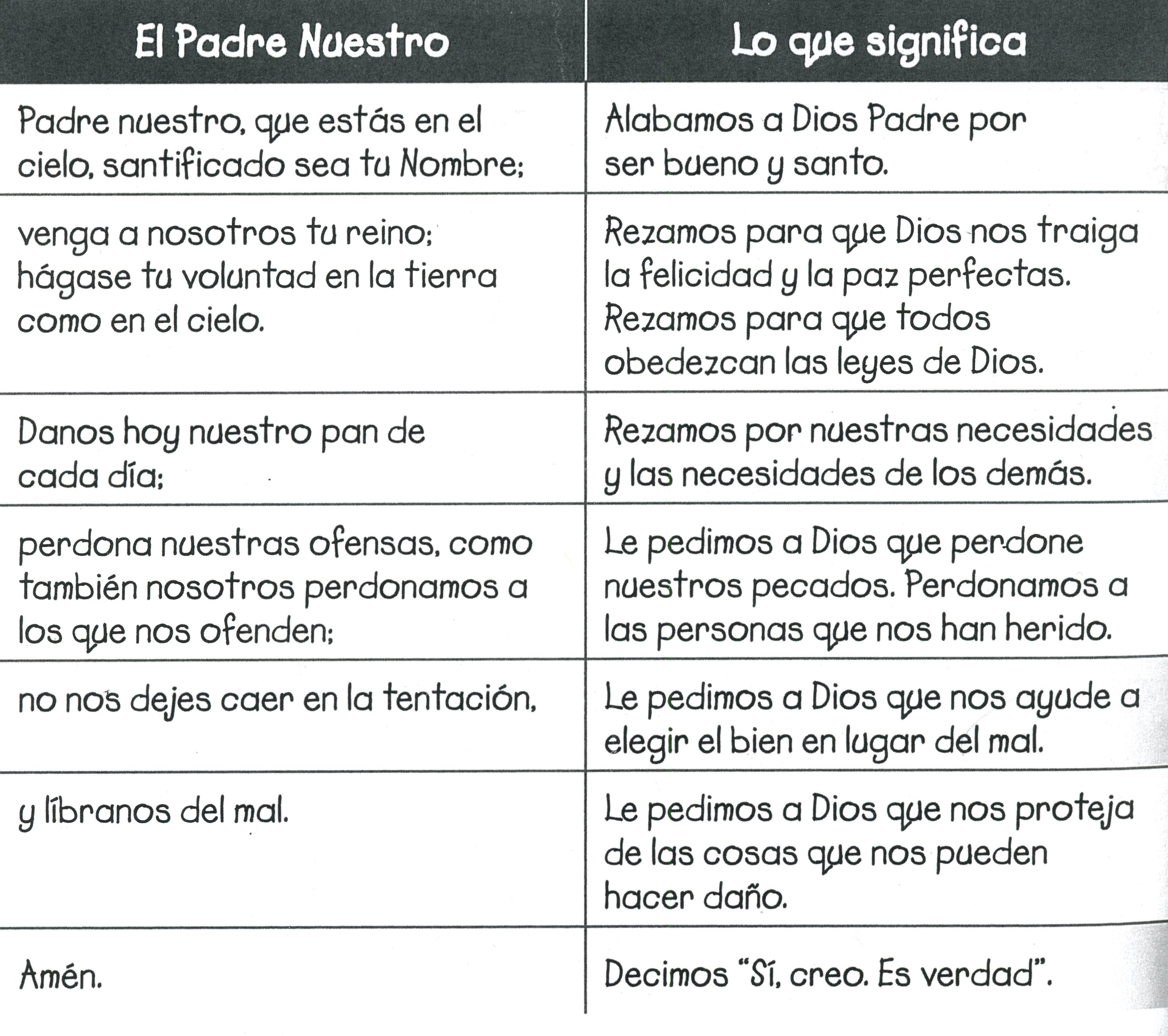 El Padre Nuestro - con su significado sin sección de encabezado - en español