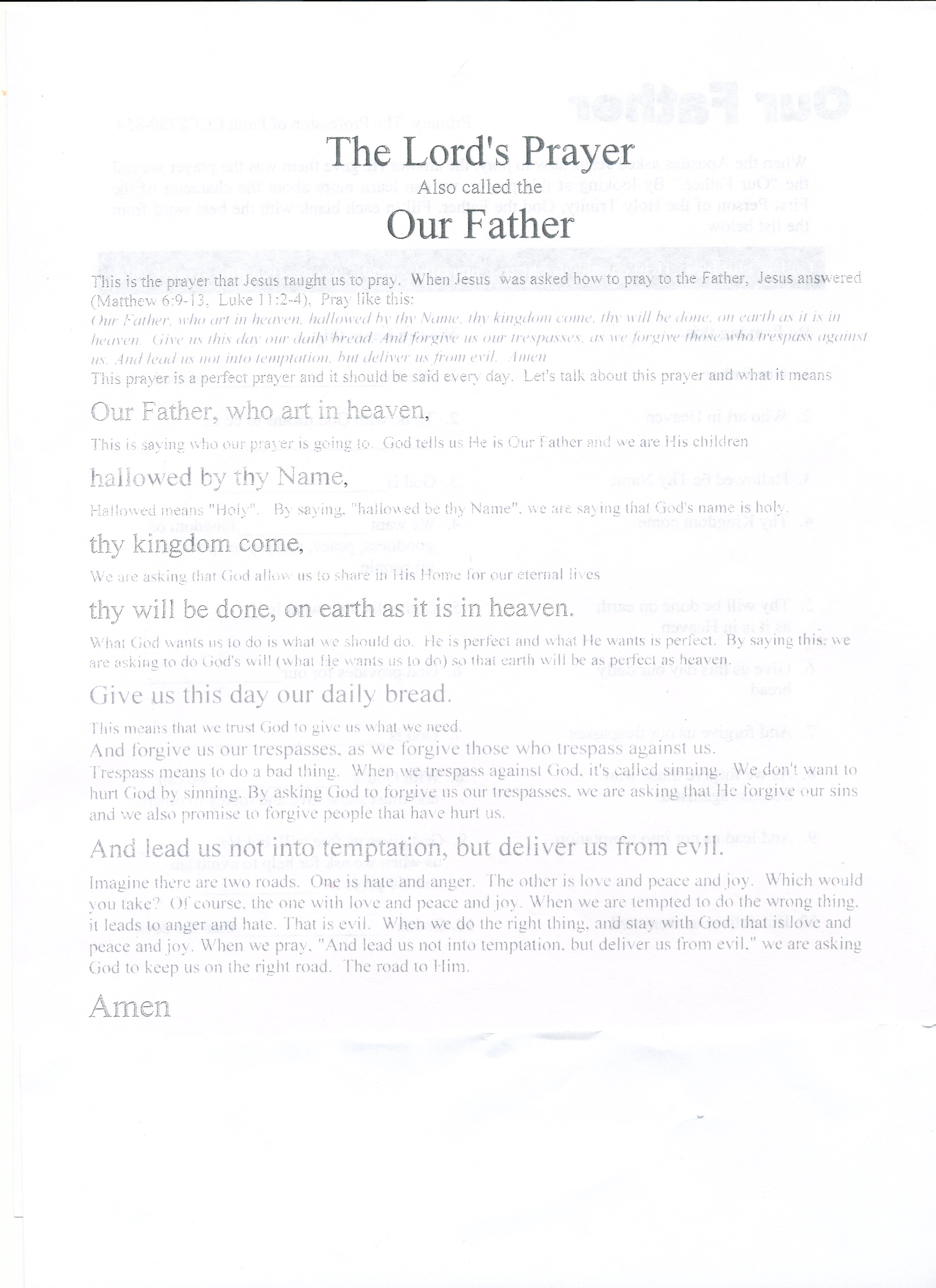 The Our Father - with What It Means without header section