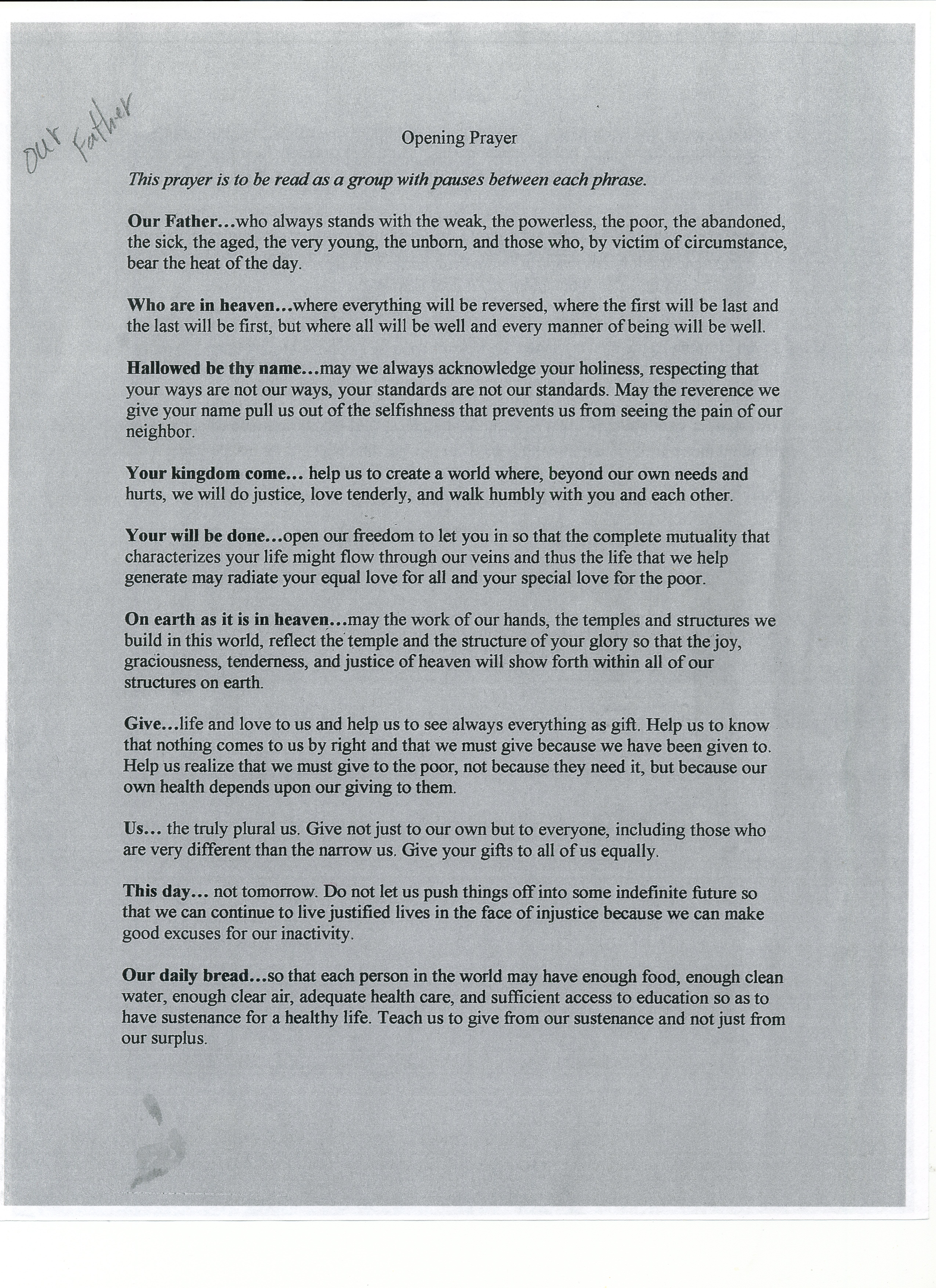 The Our Father - in pictures