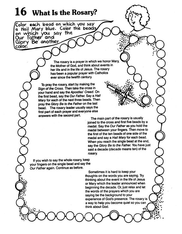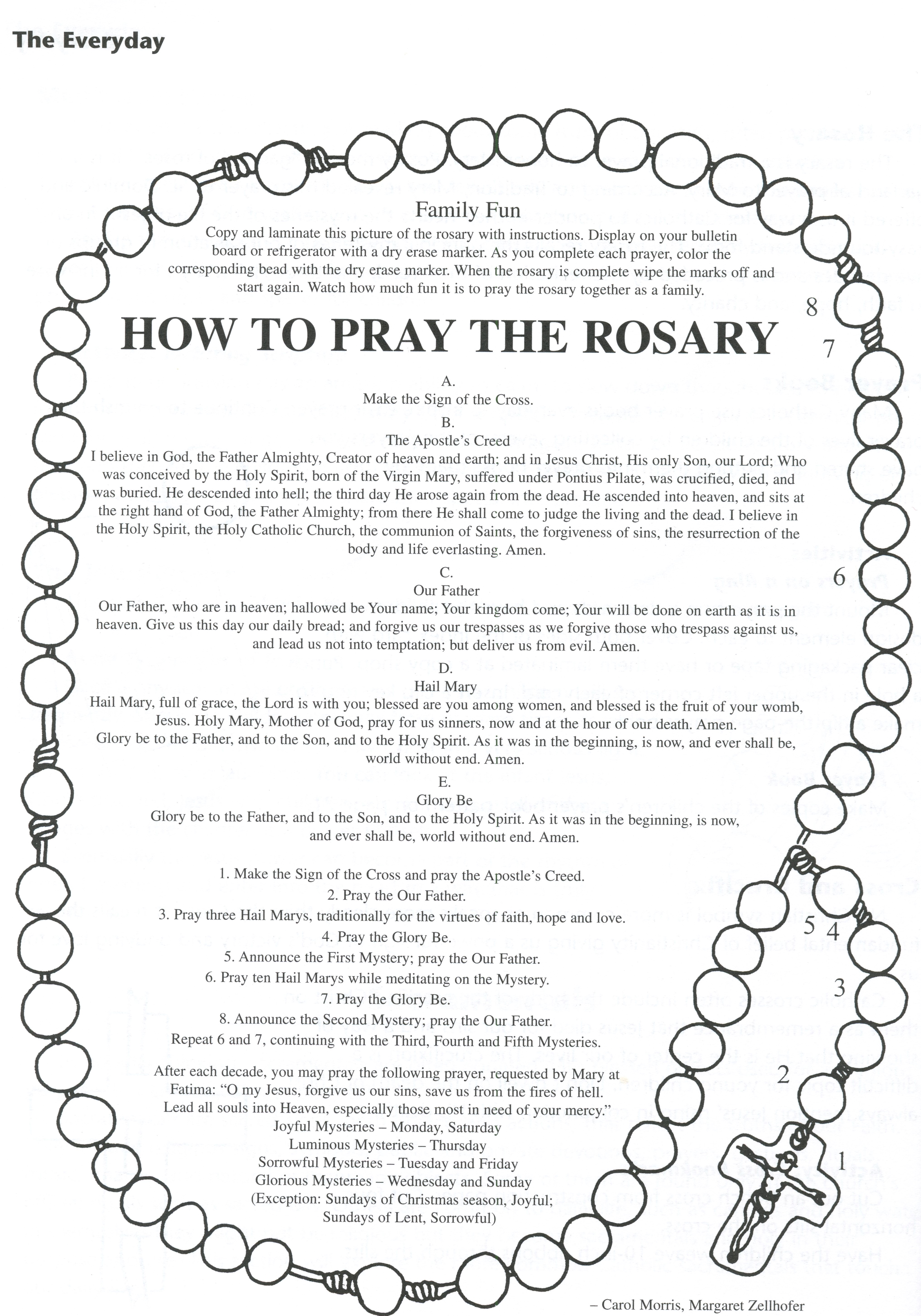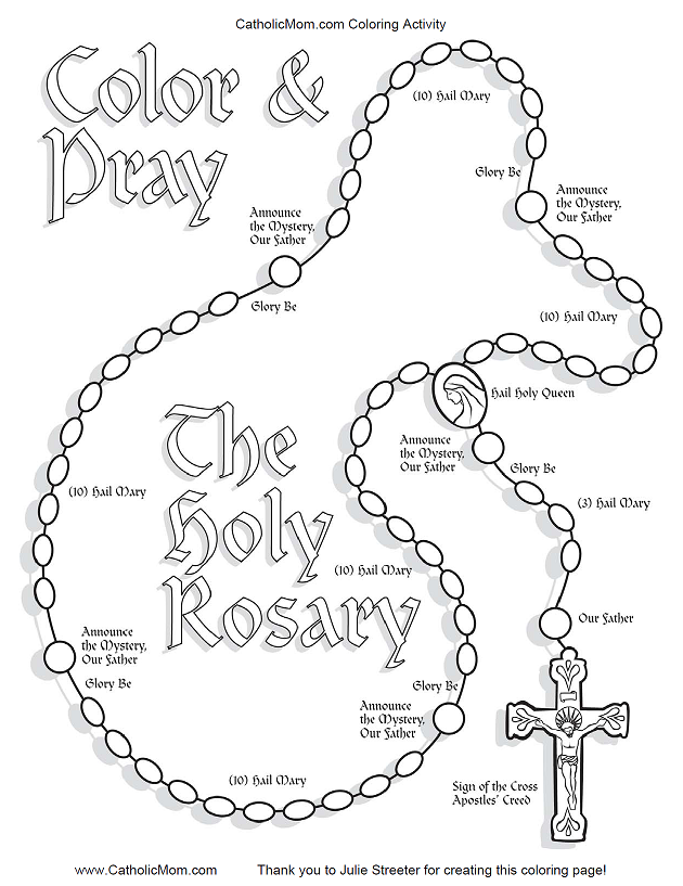 Basic - Rosary with what to pray - colorable - from CatholicMom.com