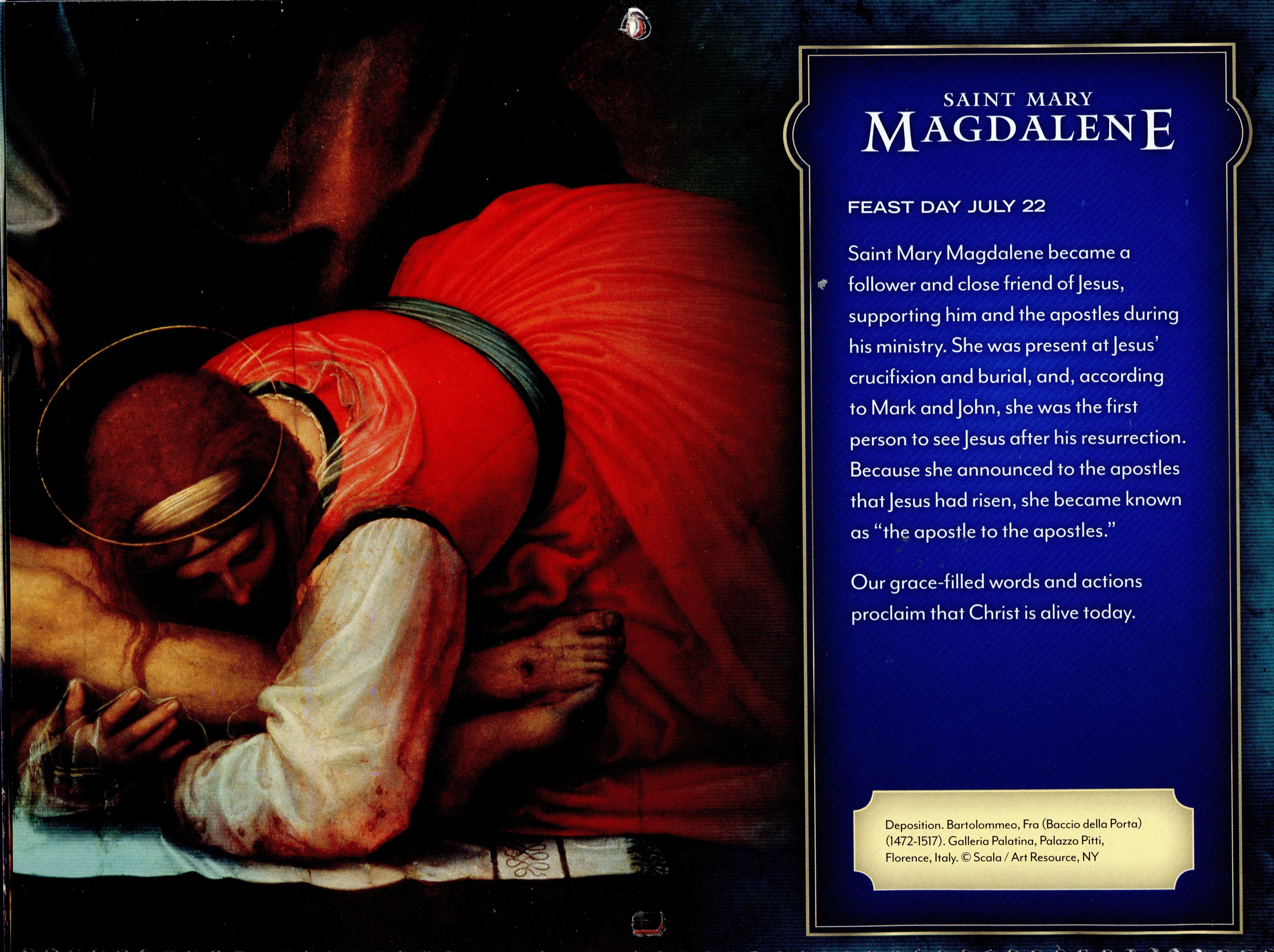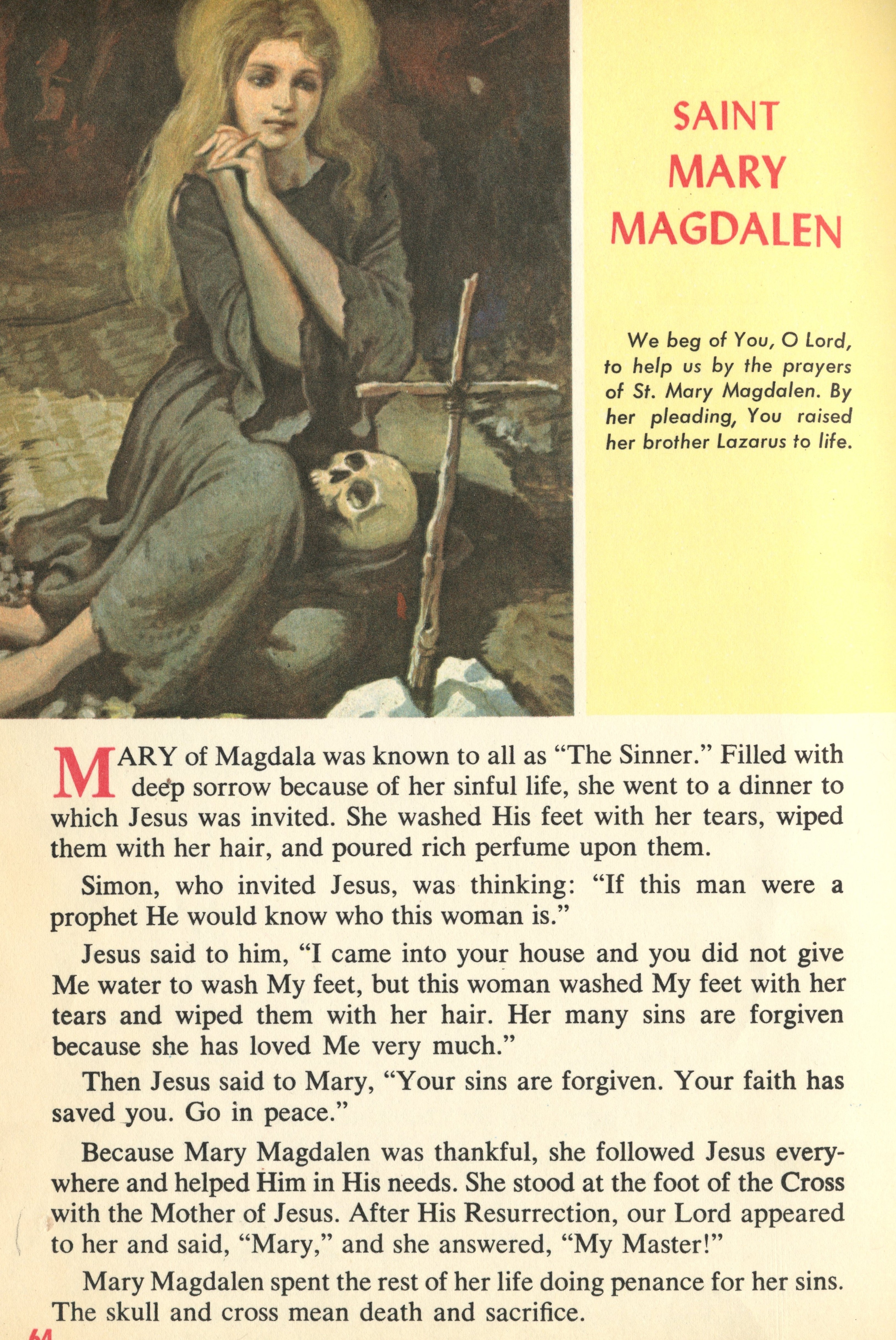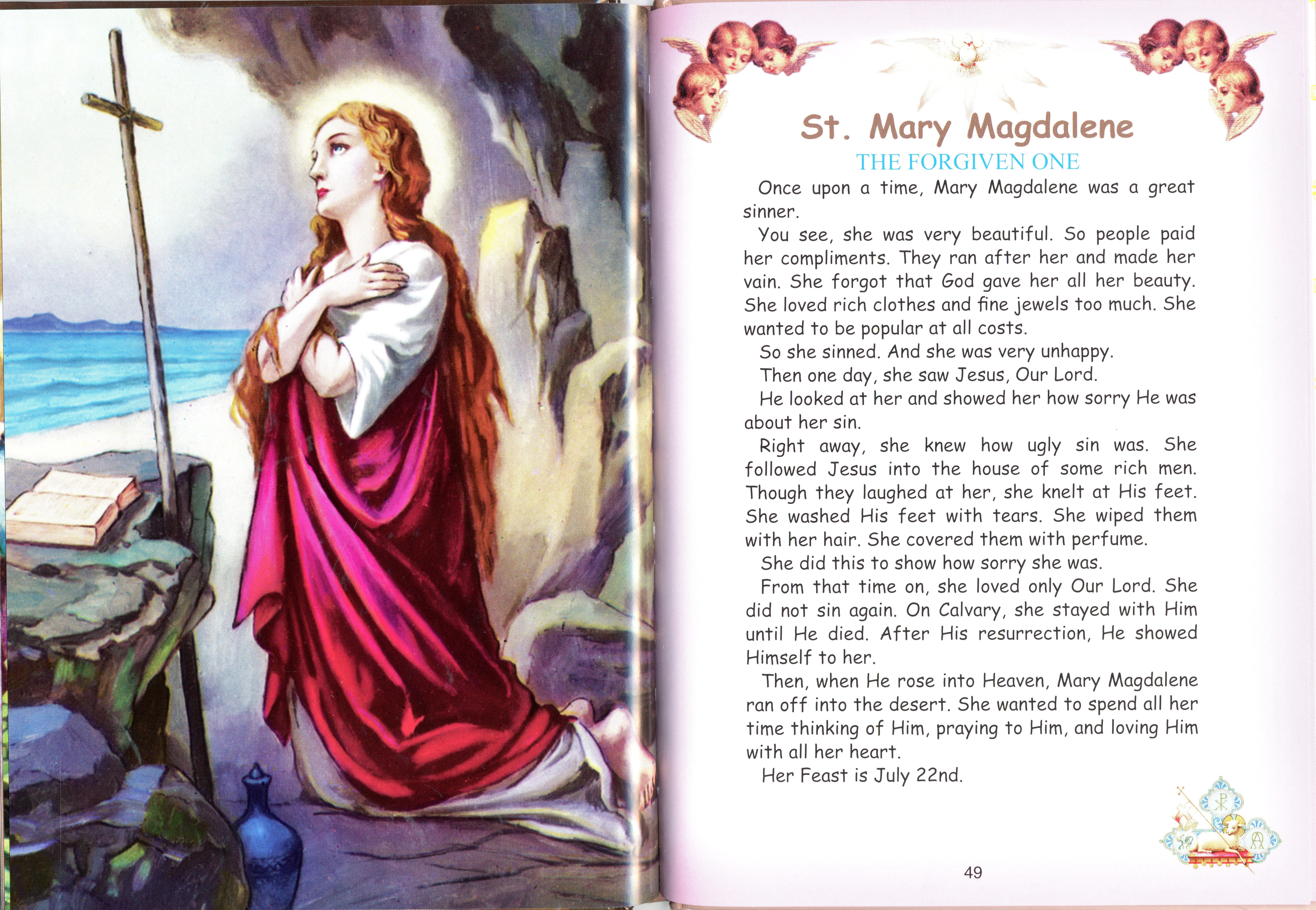 Mary Magdalene in Picture Book of Saints Mary Magdalene from Kids Korner Mary Magdalene in HOG Mary Magdalene from the Calendar Mary Magdalene Picture to Color
