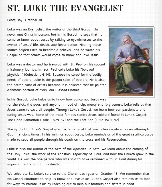 St. Luke from Fun Facts (solo en ingles)