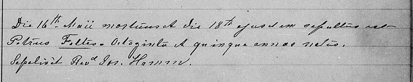 131885 Burial record of Peter Feltes