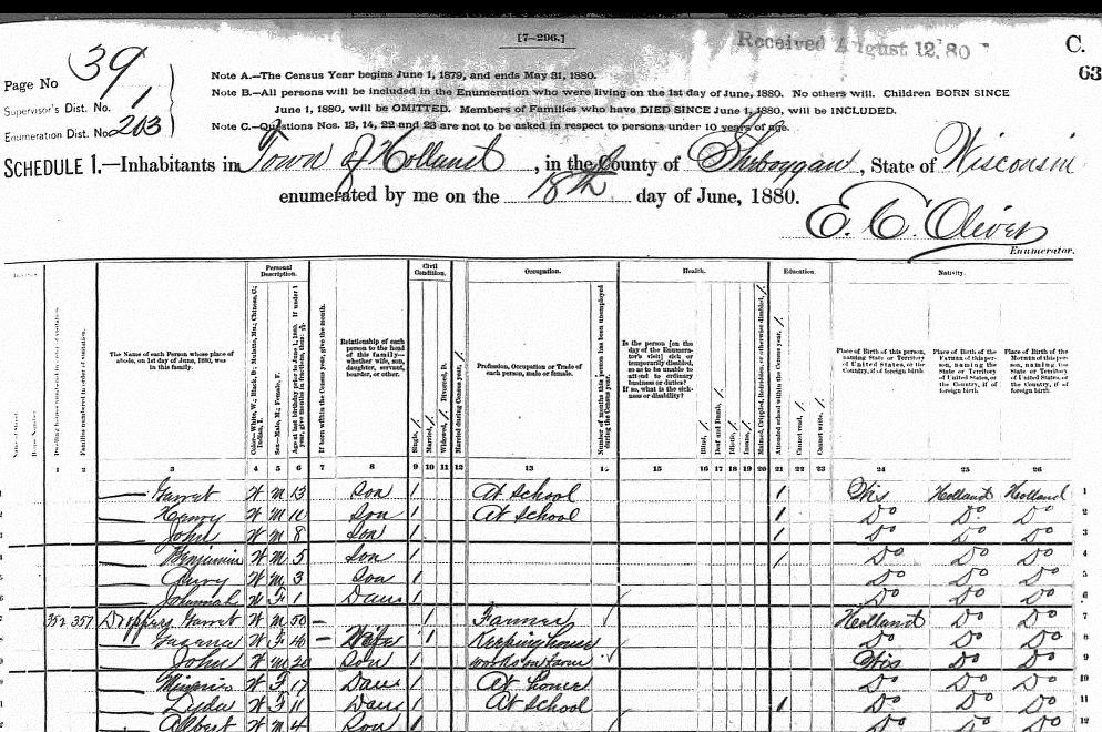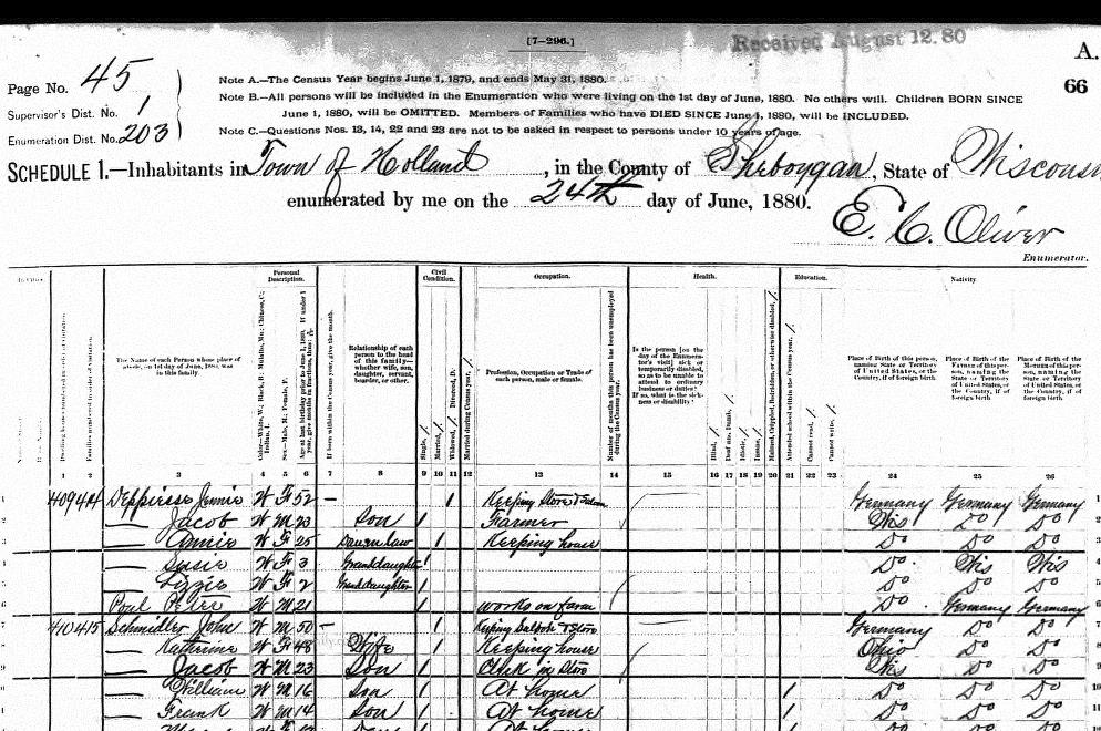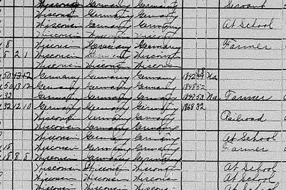 | - | Nick | W | M | 14 | son | Single | works on farm | / | Wisconsin | Germany | Germany | |