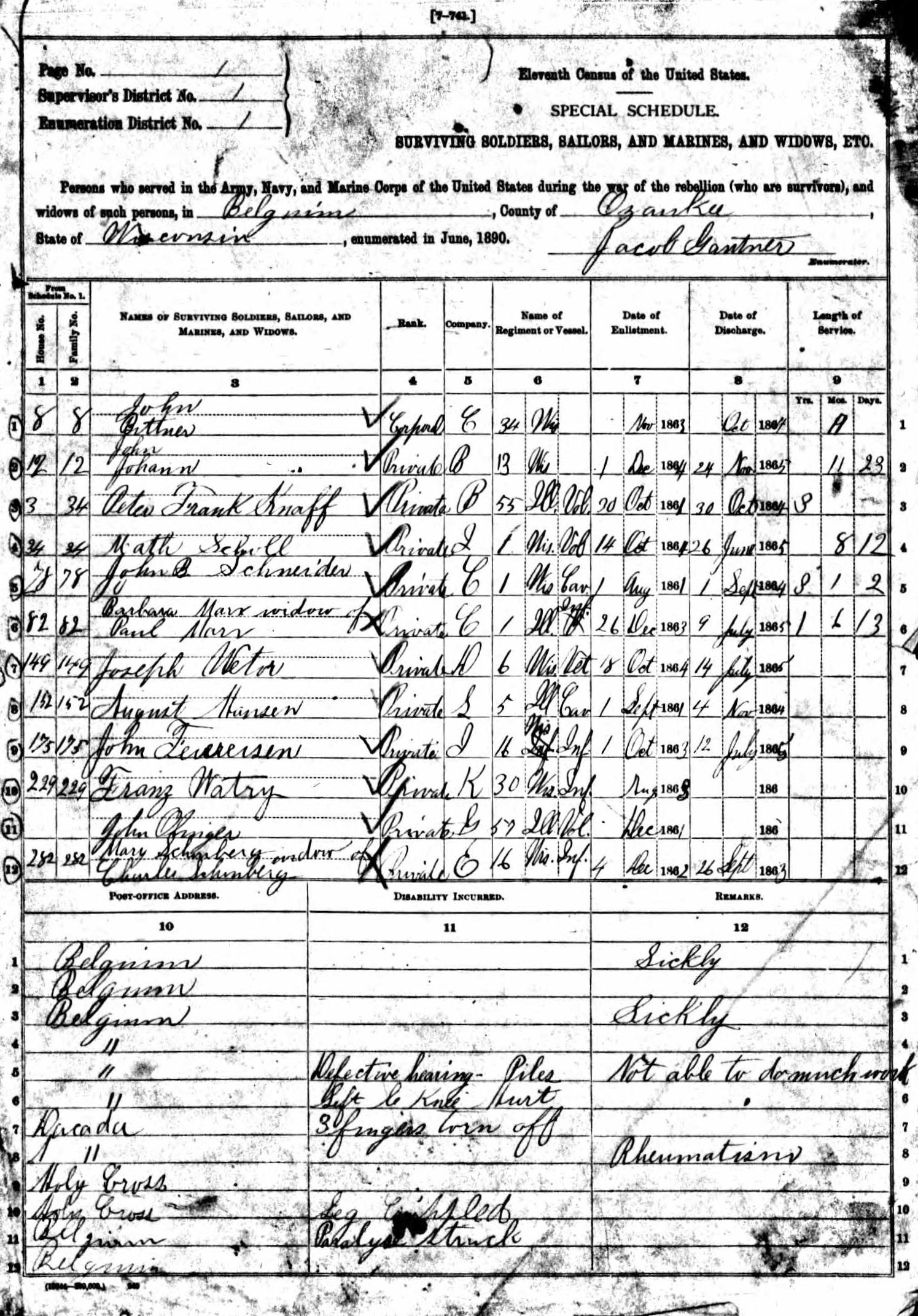 A letter from Irene Bauernfeind in 1957 after getting information from her father, Jake Hansan, says that "His horse was shot from under him and later, when given another, it became frightened, nearly trampling him to death. Sometime during the war he had fingers on both hands cut off."
