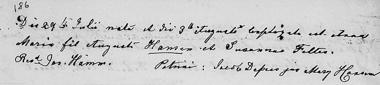 1884 Baptism of Anna Hansen in St. Nicholas Church, Dacada, WI