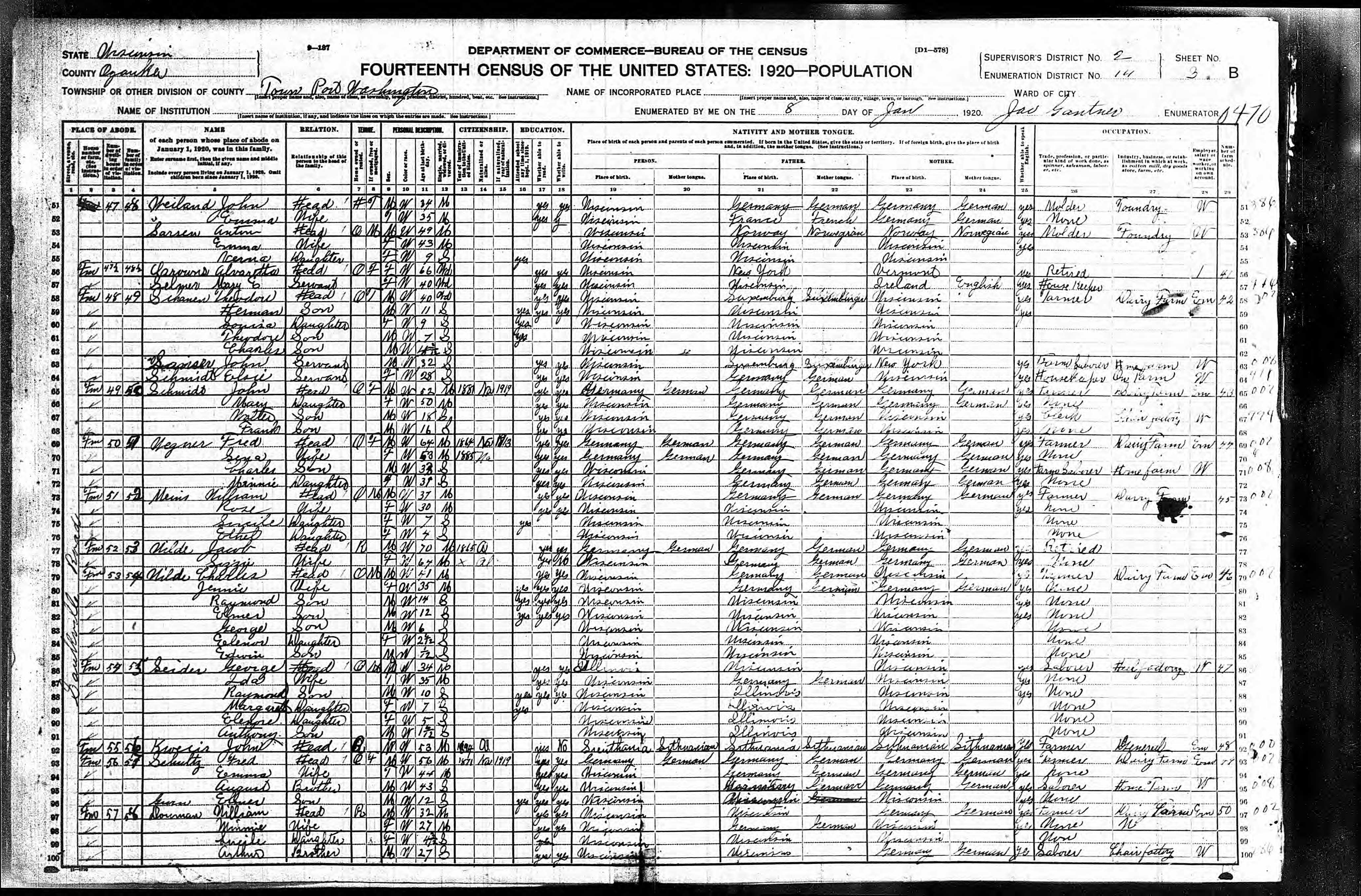 1920 Census Wisconsin, Ozaukee County, Port Washington