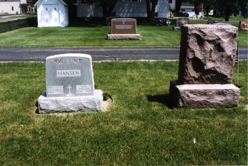 | The tombstones of August and Susan Hansen and John and Susan Hansen. | ||