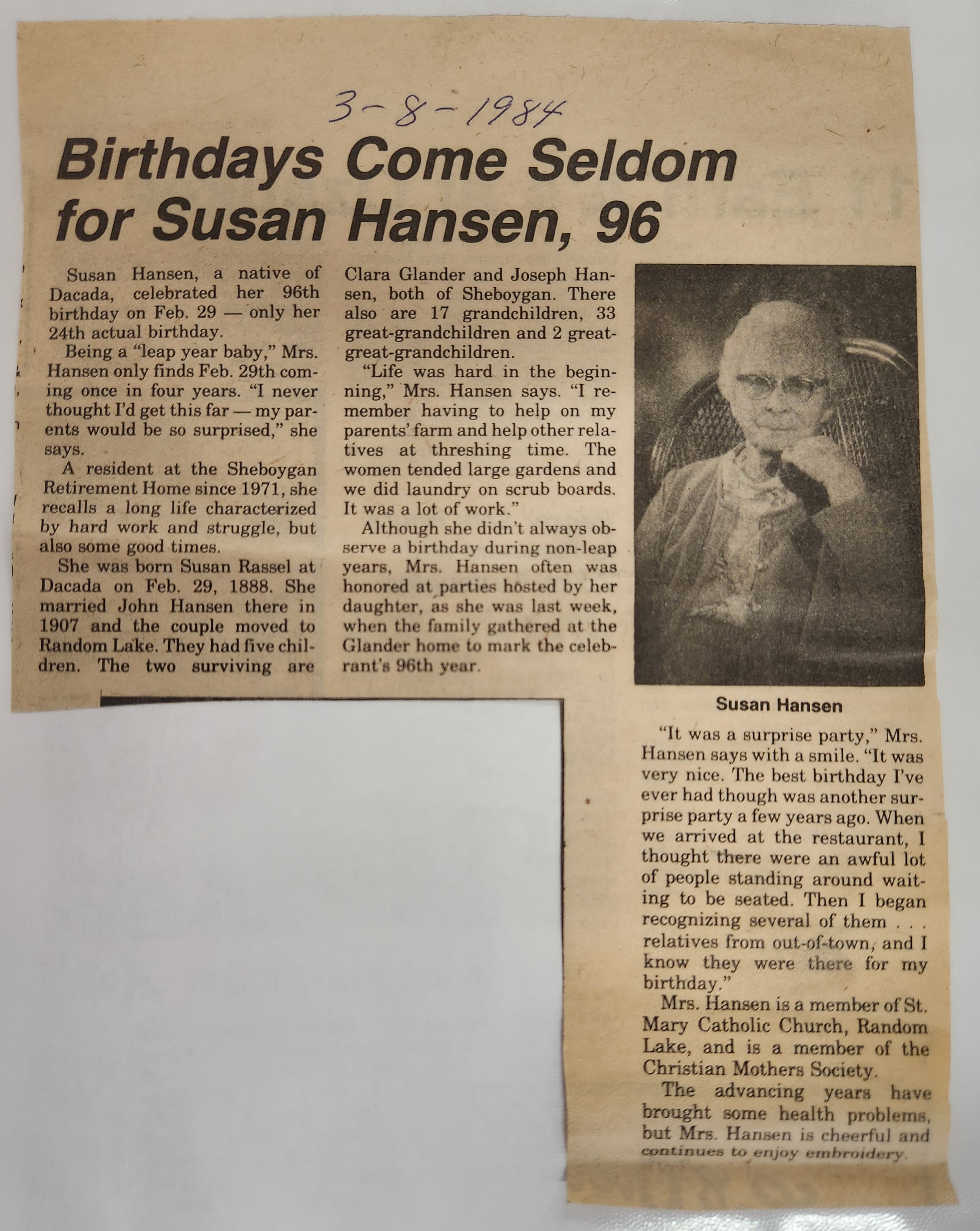 | 36 1984 Birthday of Susan Rassel Hansen |