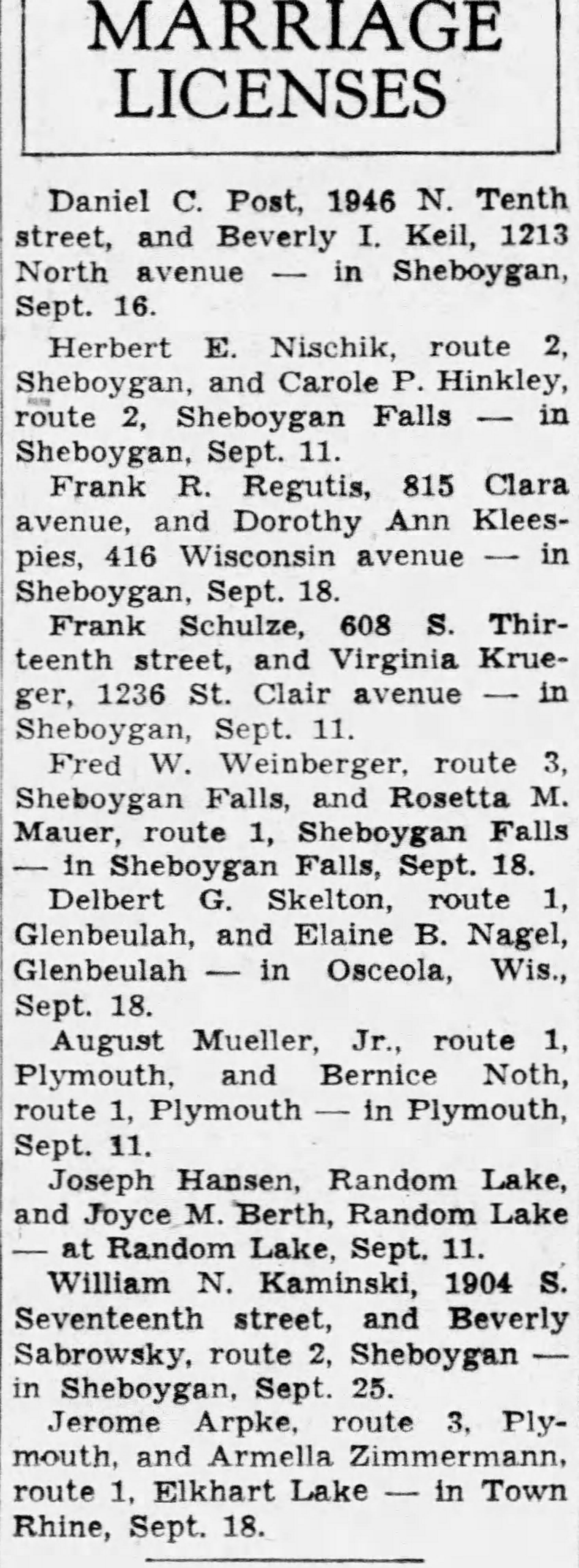| 13 1948 Marriage Licenses in The Sheboygan Press | |
