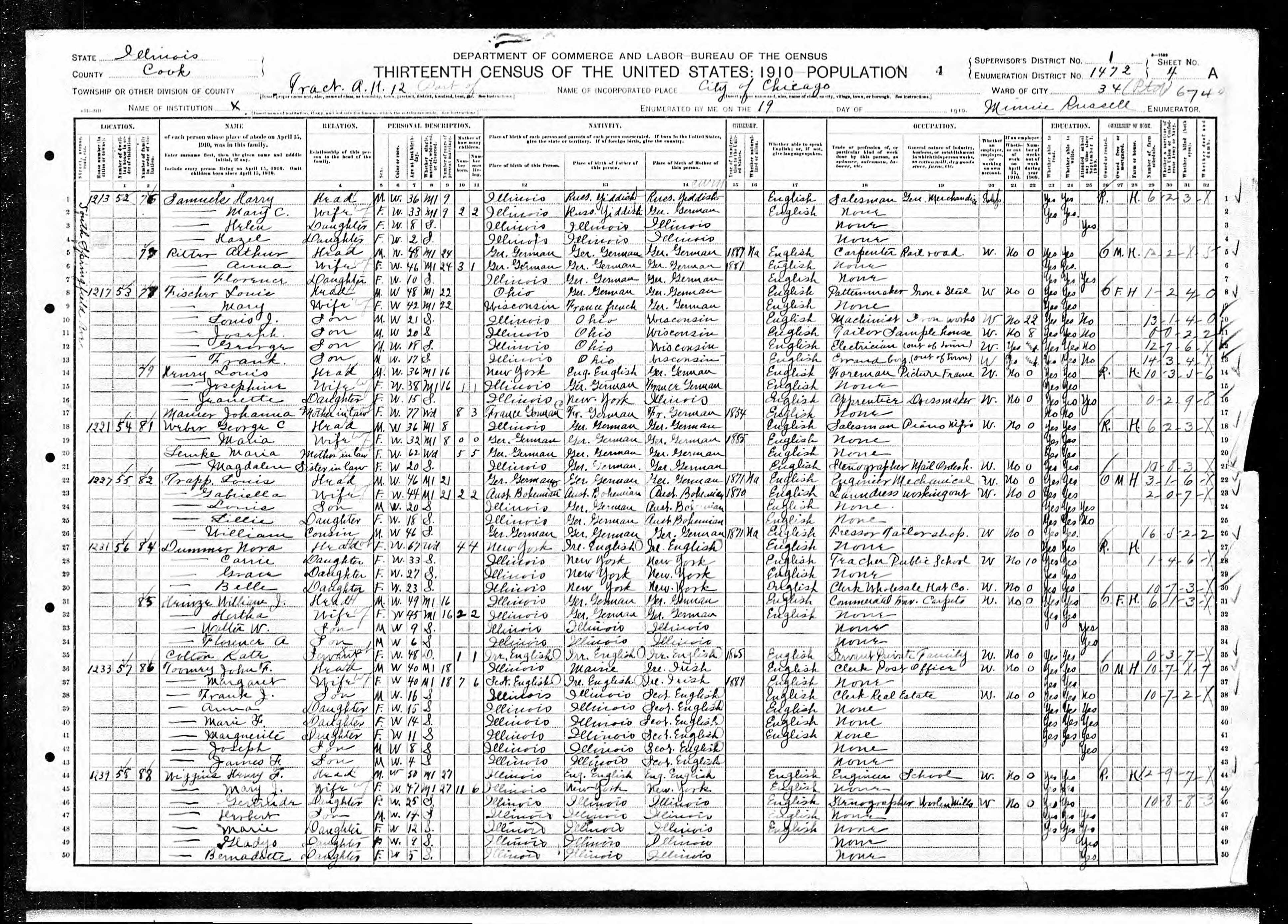 1910 Census Illinois, Cook County, Chicago