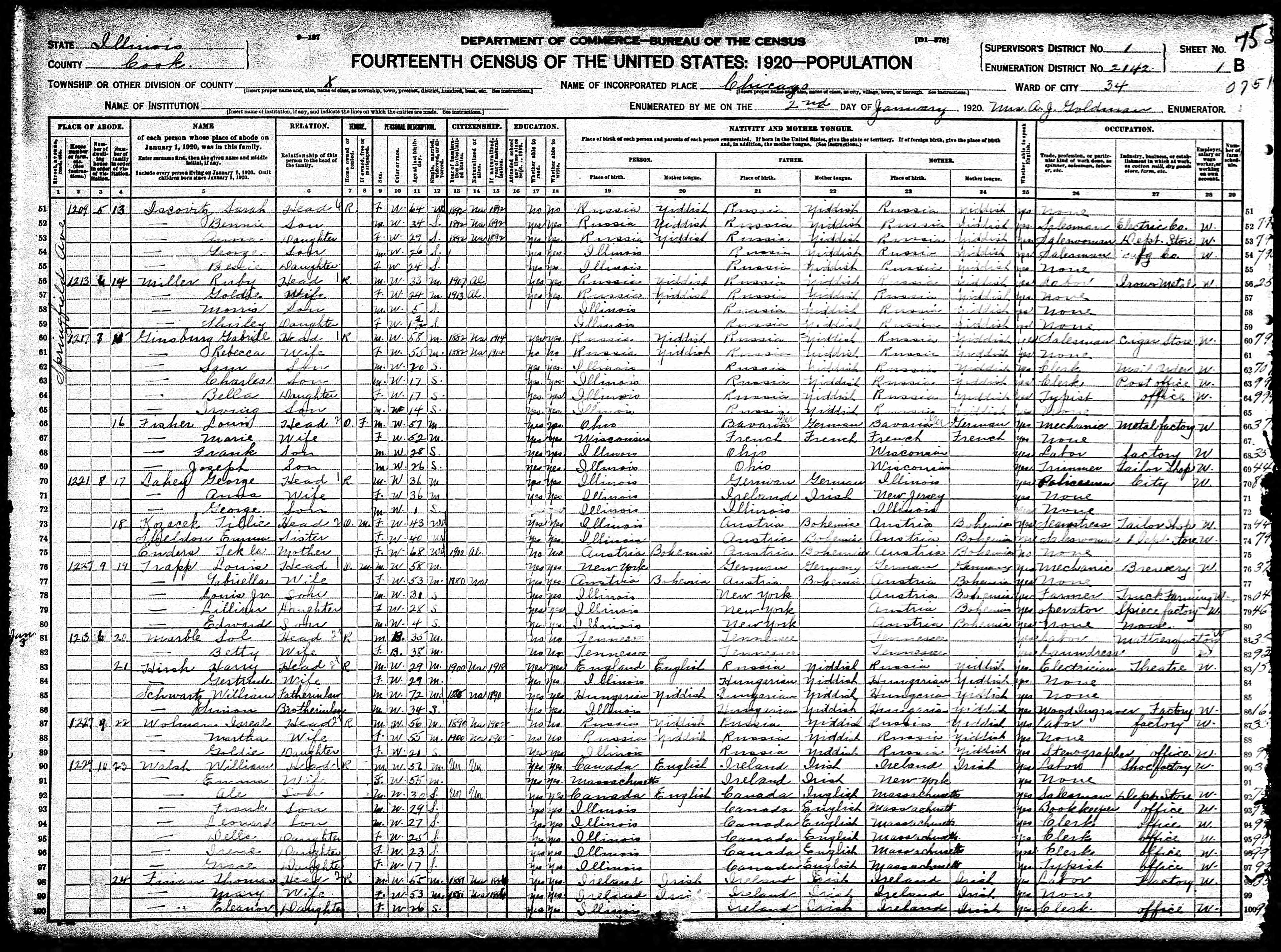 1920 Census Illinois, Cook County, Chicago