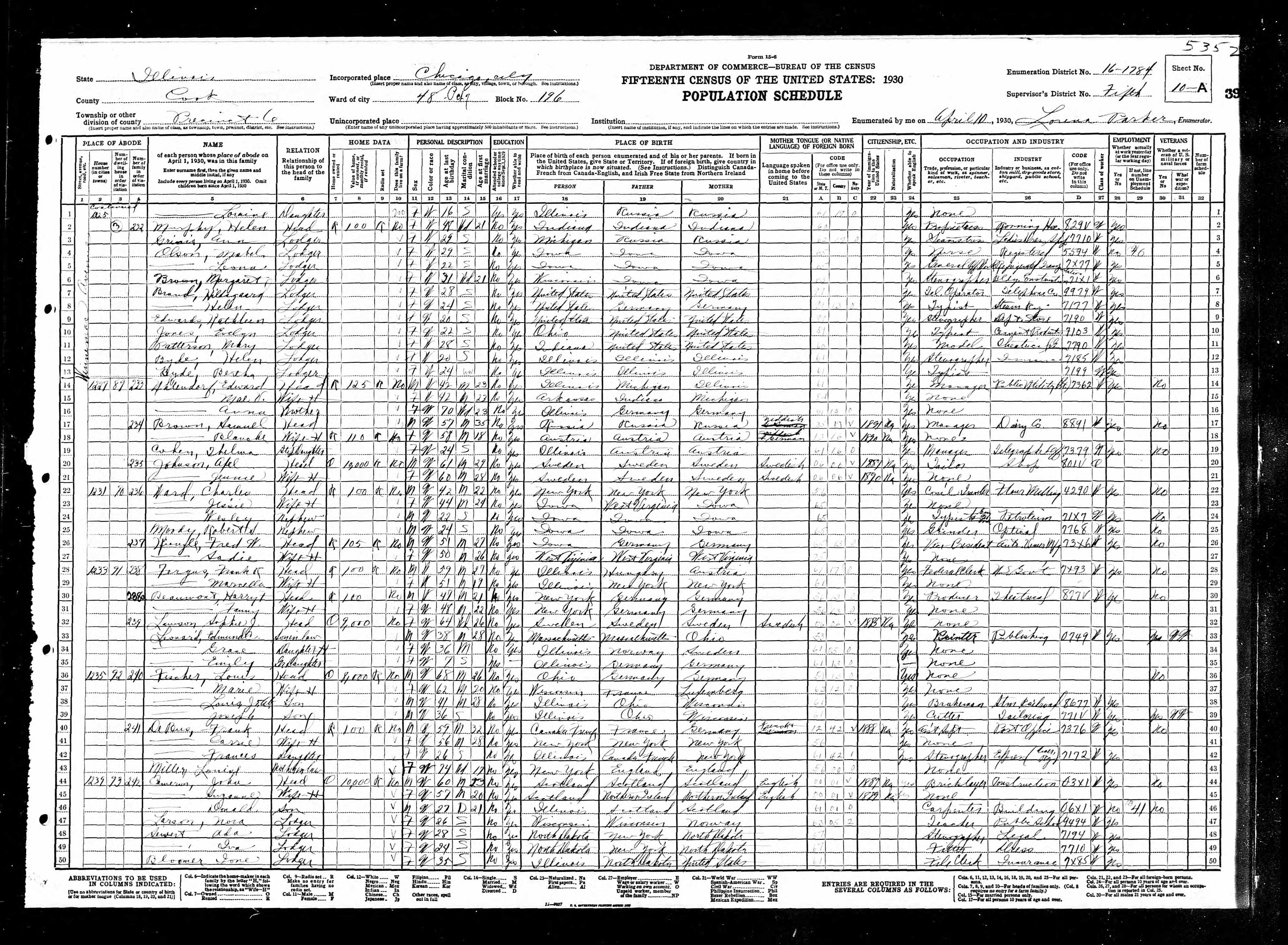1930 Census Illinois, Cook County, Chicago