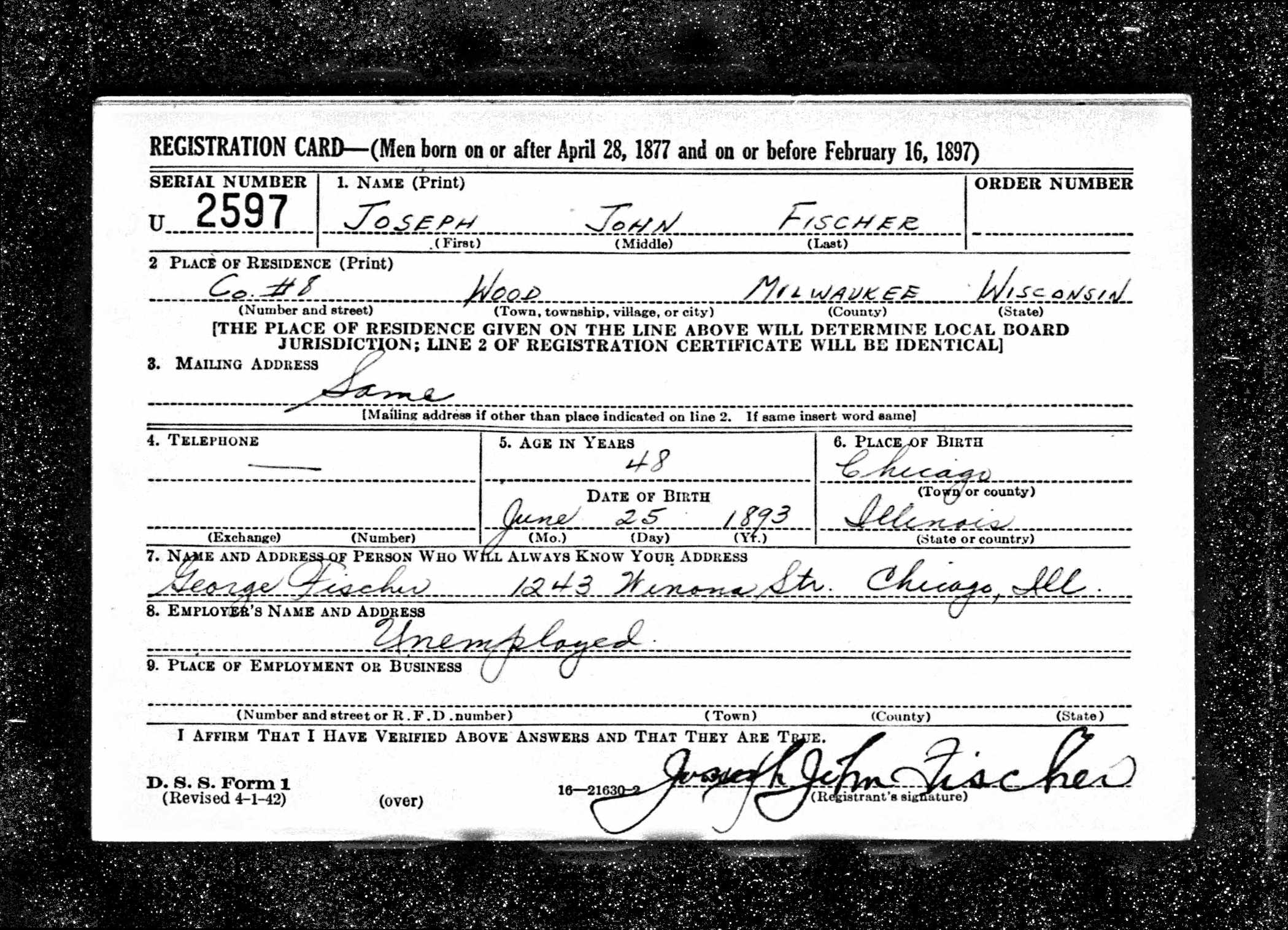 1942 WWII draft registration