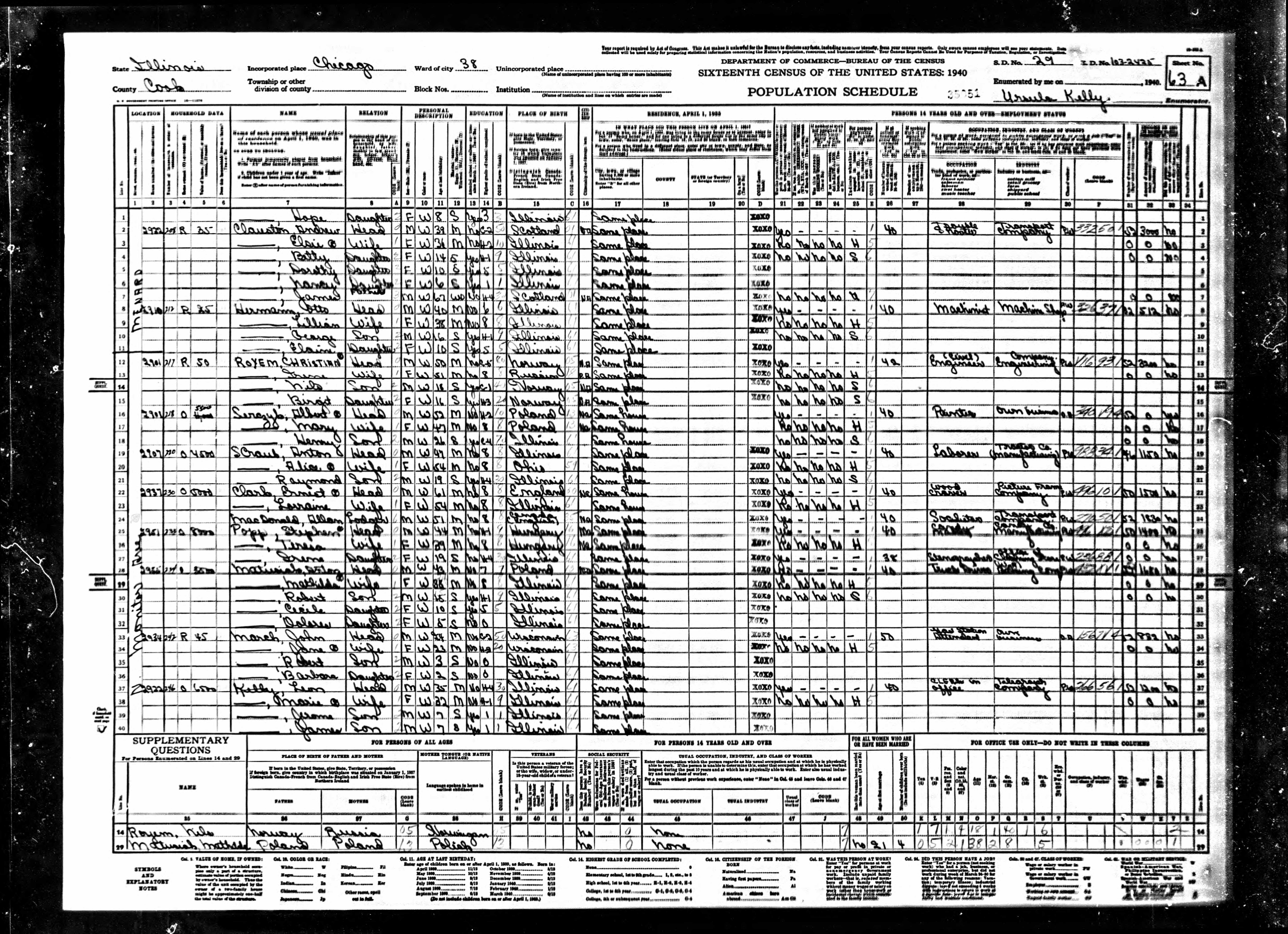 1940 Census Illinois, Cook County, Chicago