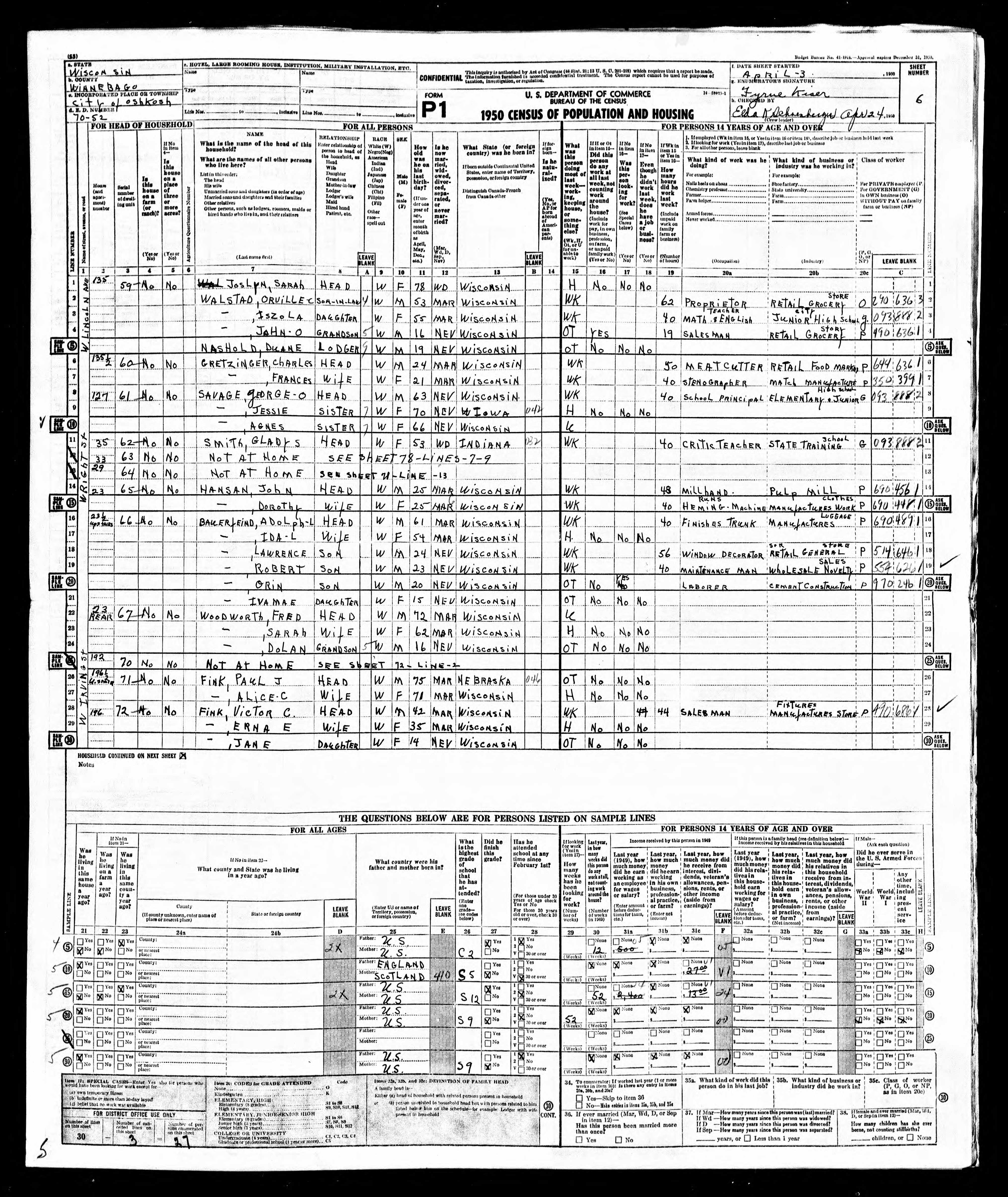 1930 Census Wisconsin, Winnebago County, Oshkosh and next page