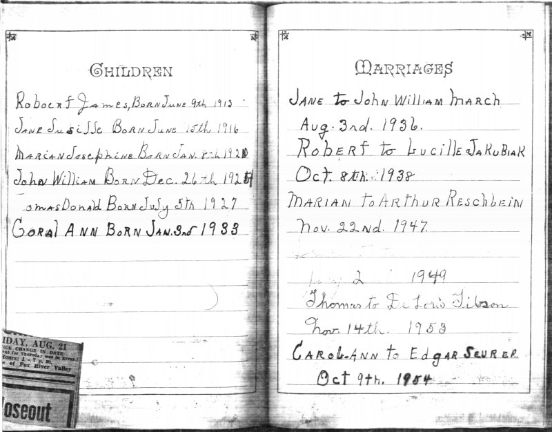 | MARRIAGE: | Dorothy Kargus (Feb. 15, 1925-Apr. 5, 1987) on July 2, 1949 in St. Peter's Catholic Church, Oshkosh, Winnebago County, Wisconsin. 11 14 16 |