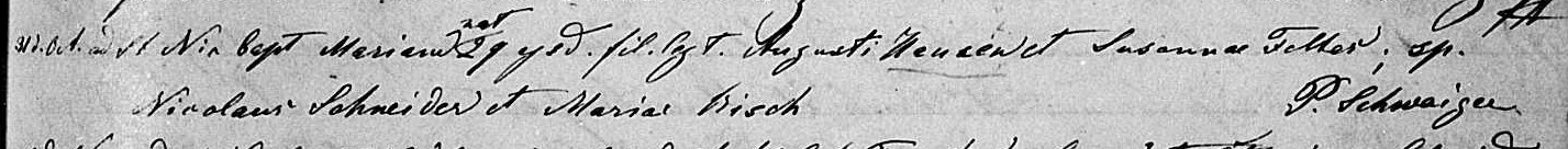 | 11 1867 Baptismal Record of Marie Hansen as written in the record book from St. Nicholas Church, Dacada, WI. | |||||||