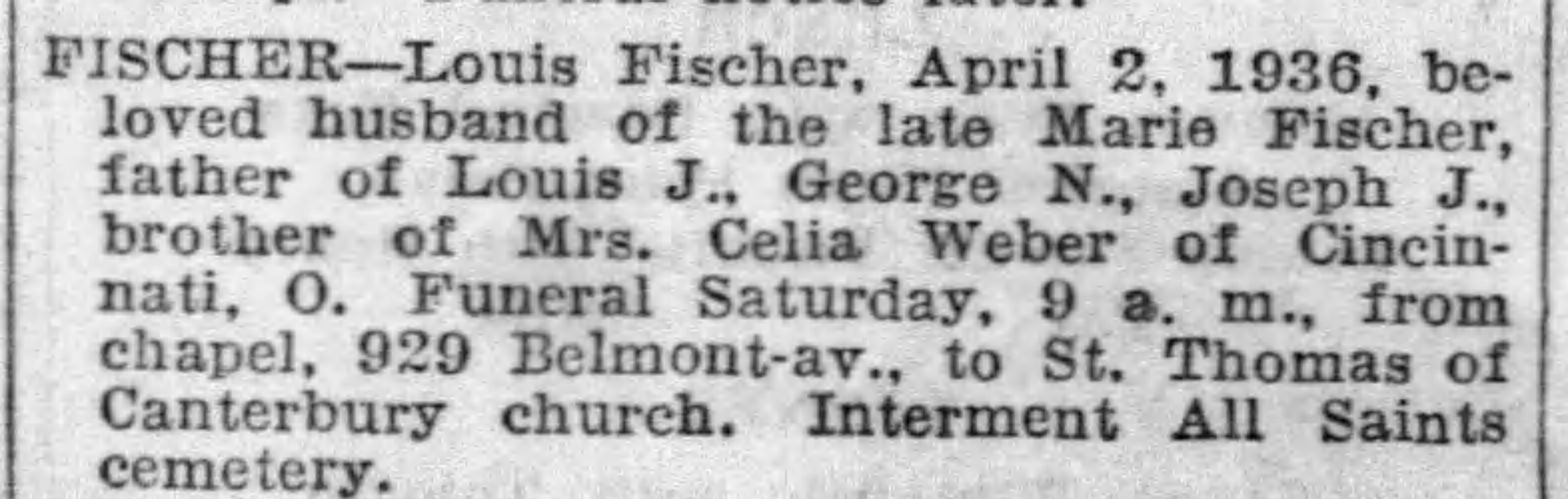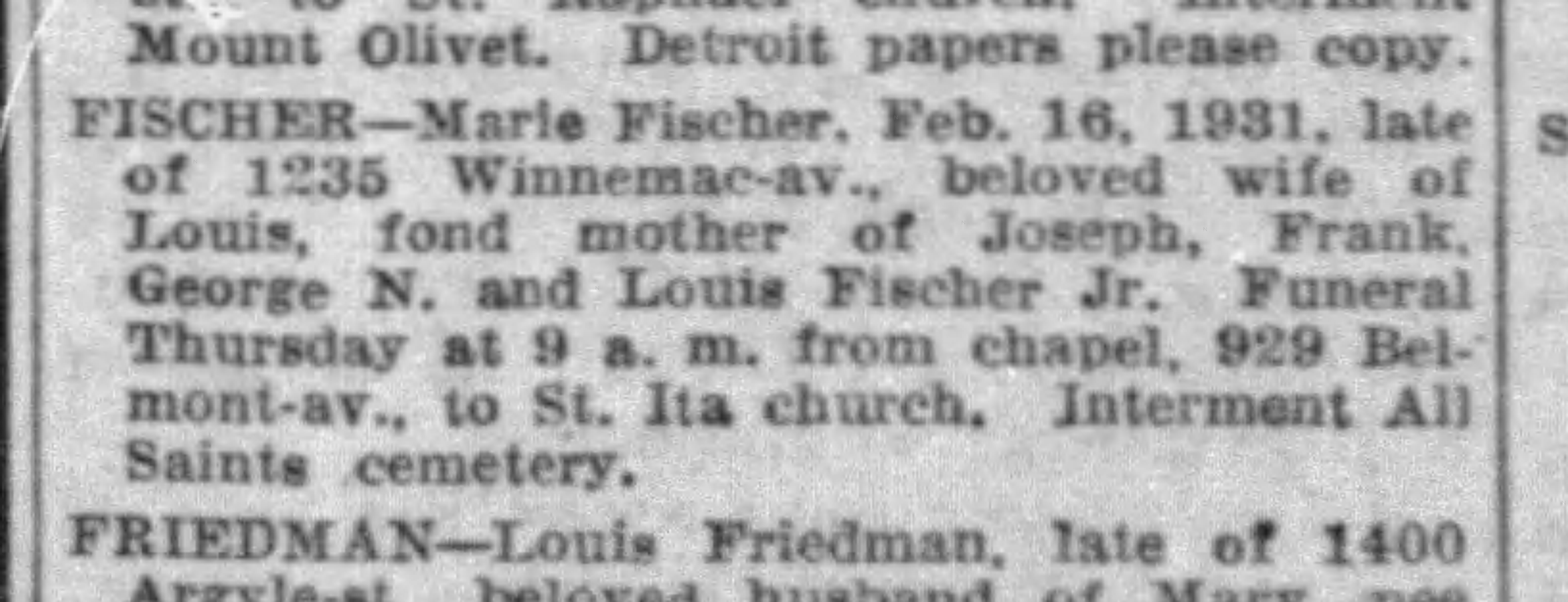 | 16 1931 Obituary of Marie Fischer in the Chicago Tribune | |||||||