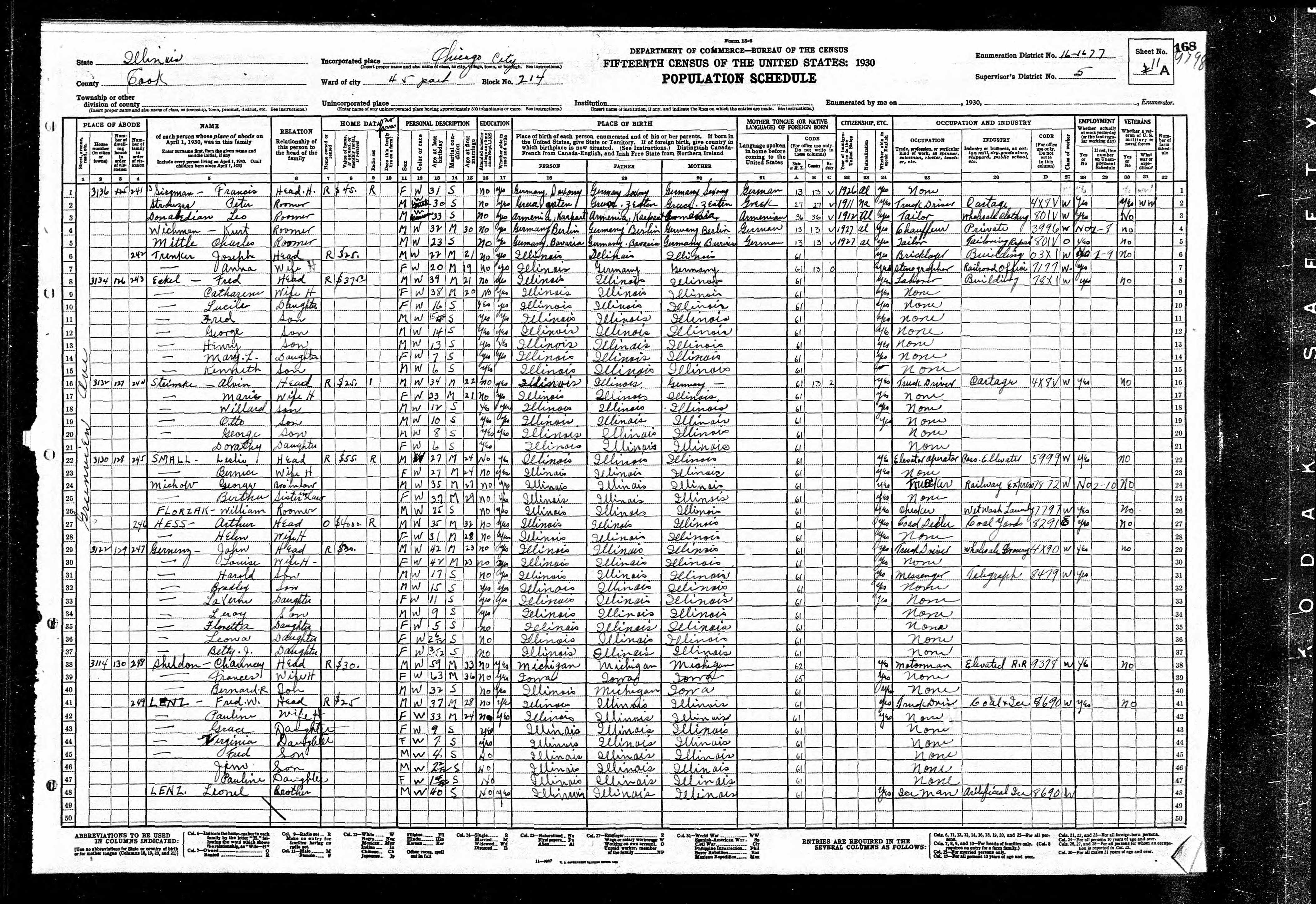 1930 Census of Chicago, Cook County, IL