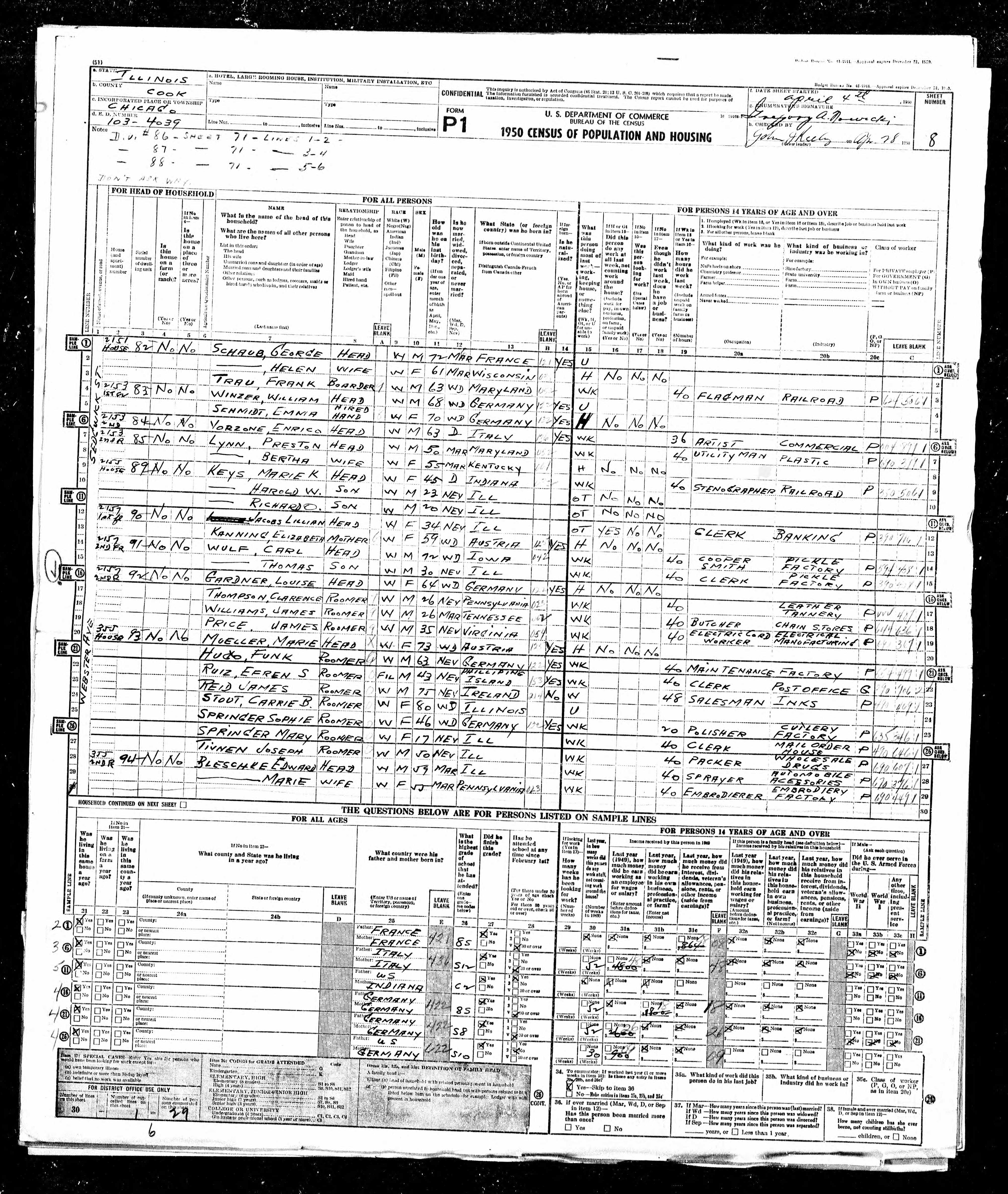 1950 Census of Chicago, Cook County, IL