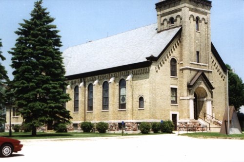 | More information on the church with this picture of how it appeared in 1896 can be found on RootsWeb |